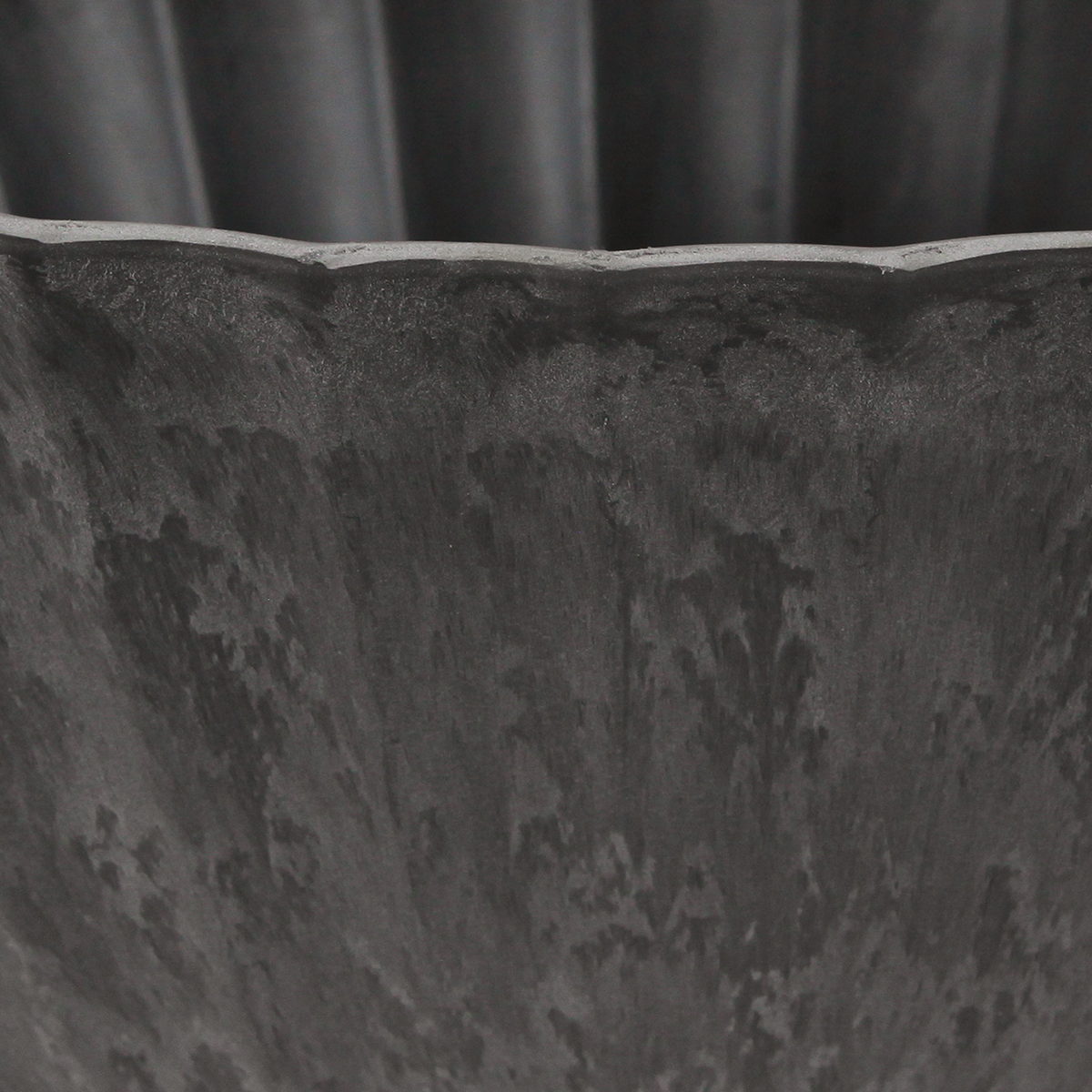 Uritettu kukkamaljamme elegantissa antrasiitissa on täydellinen valinta moderniin sisä- ja ulkosisustukseen. Pienestä veneestä inspiraationsa saanut soikea muoto tuo ripauksen hienostuneisuutta ja tyyliä mihin tahansa tilaan. Reilu noin 36 cm:n pituinen malja tarjoaa runsaasti tilaa kukka-asetelmillesi, olipa kyseessä sitten olohuone tai terassi tai puutarha. Kestävät urat antavat koristeelliselle maljalle dynaamisen tekstuurin.