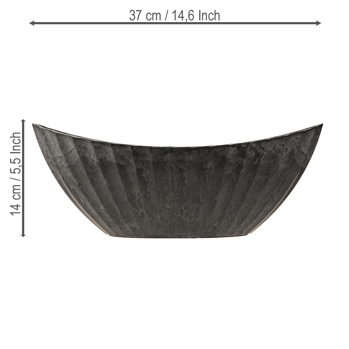 Kukkakulho uritettu soikea vene antrasiitti 36cm