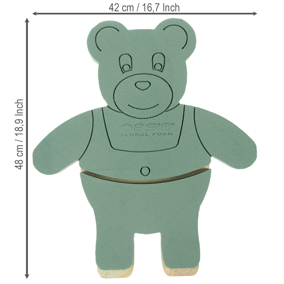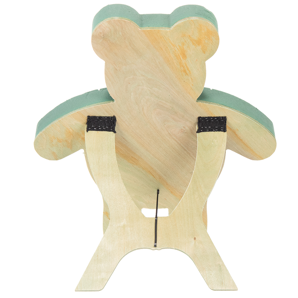 Teddy kiinni vaahtomuovihahmossa on omaperäinen ja kaunis kukka-asetelma. Karhun hahmo on valmistettu vihreästä vaahtomuovista, ja se on kiinnitetty puiseen jalustaan, jossa on jalusta. Teline voidaan kätevästi avata ja sulkea kuljetusta varten. Lisäksi tulppamassassa on leikkausviivat ja se on jaettu segmentteihin, kuten suuhun, nenään, korviin ja vaatteisiin. Leikatut viivat suojaavat kuivumiselta, koska vesi kerääntyy syvennysten eteen.