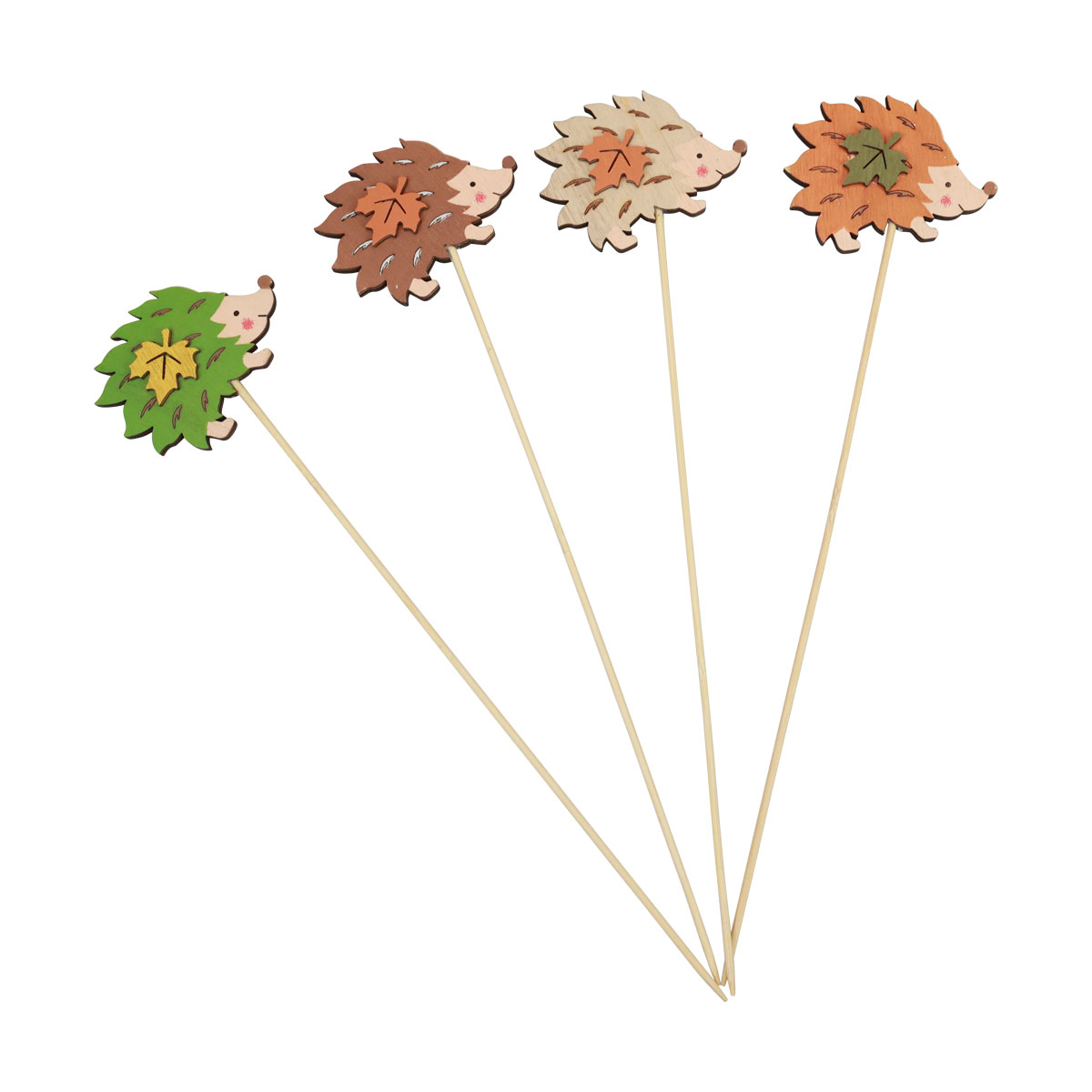 Kukkapuikko Puinen Hedgehog Koriste Ruskea Vihreä 8×6cm 12 kpl