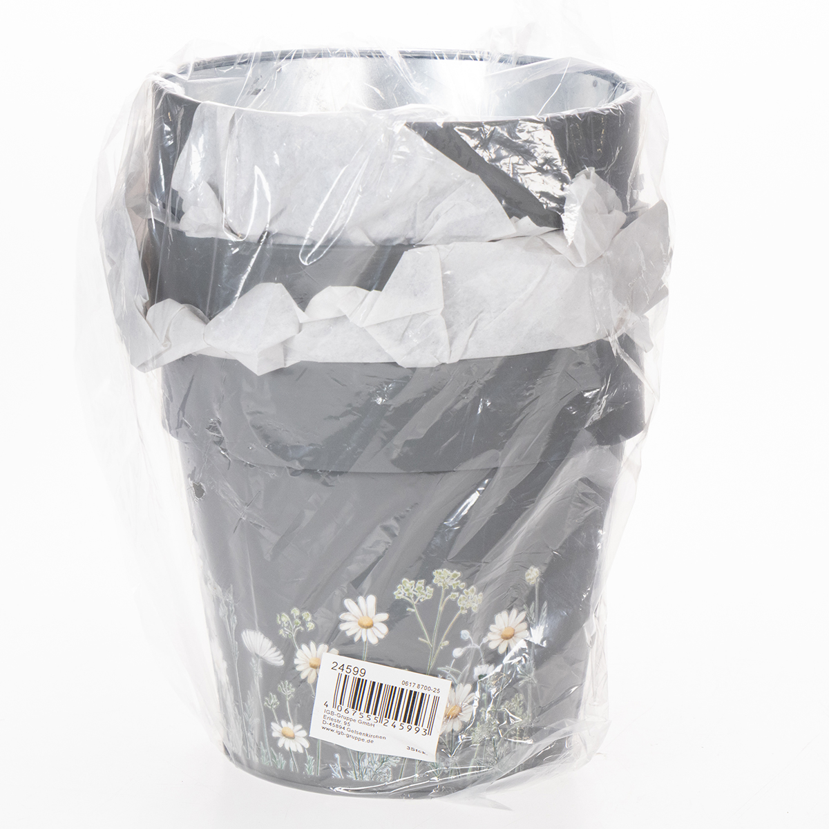 Kukkaruukku, joka tuo mieleen kesäniityn tunnelman – eikö kuulostakin unelmaiselta? Lumoavan villikukkien kuvioinnin ansiosta tämä ruukku tuo ripauksen luontoa suoraan parvekkeellesi tai terassille. Herkät kukat, jotka yhdistyvät harmonisesti harmaaseen metallipintaan, huokuvat yksinkertaista eleganssia, joka sopii sekä moderneihin että klassisiin ympäristöihin. Olitpa sitten suunnittelemassa eloisaa parvekeasetelmaa tai eleganttia huonekasviasetelmaa, nämä kukkaruukut esittelevät kasvisi täydellisesti. Ja mikä parasta? Ne tulevat kätevässä kolmen ruukun sarjassa! Ihanteellinen eri kasvilajikkeiden yhdistelyyn. Monipuolinen pieni helmi, joka on paitsi kaunis myös uskomattoman käytännöllinen.
