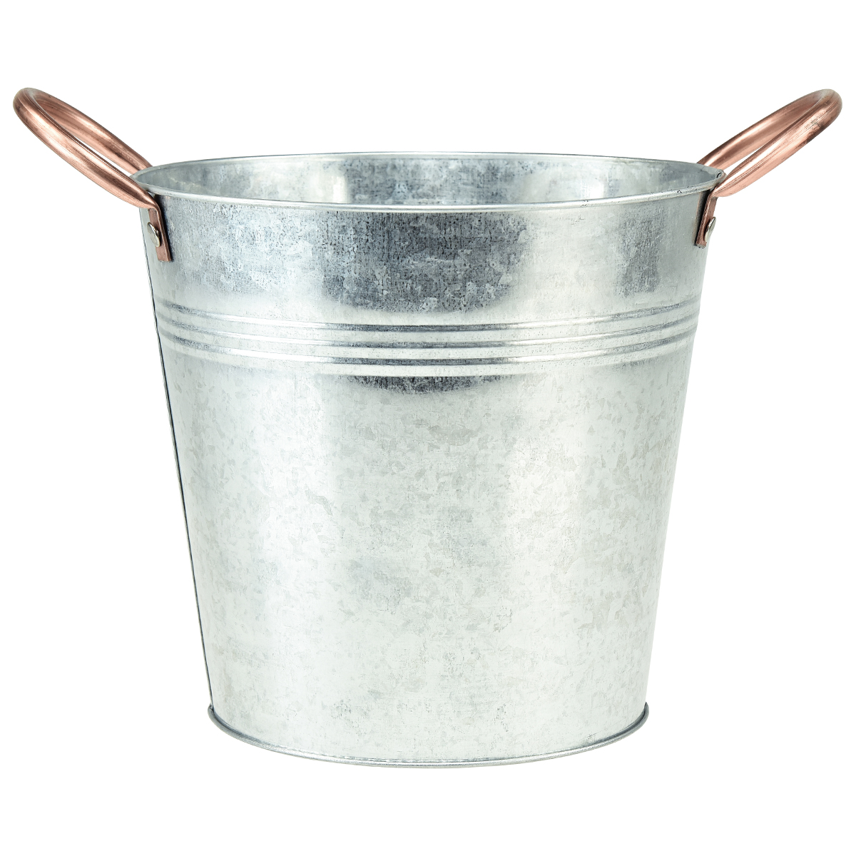 Tämän pienen metallikauhan kuparinväriset kahvat luovat jännittävän visuaalisen kontrastin hopeanväriseen koristekauhaan. Galvanoitu pinta antaa istutuskoneelle jopa hieman nostalgisen ilmeen. Ennen istutusta metallisäiliö on suositeltavaa vuorata foliolla, jotta kauha on suojattu korroosiolta.