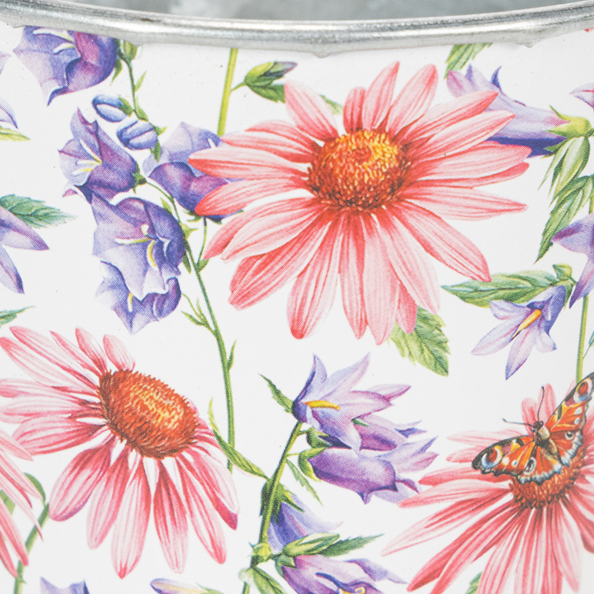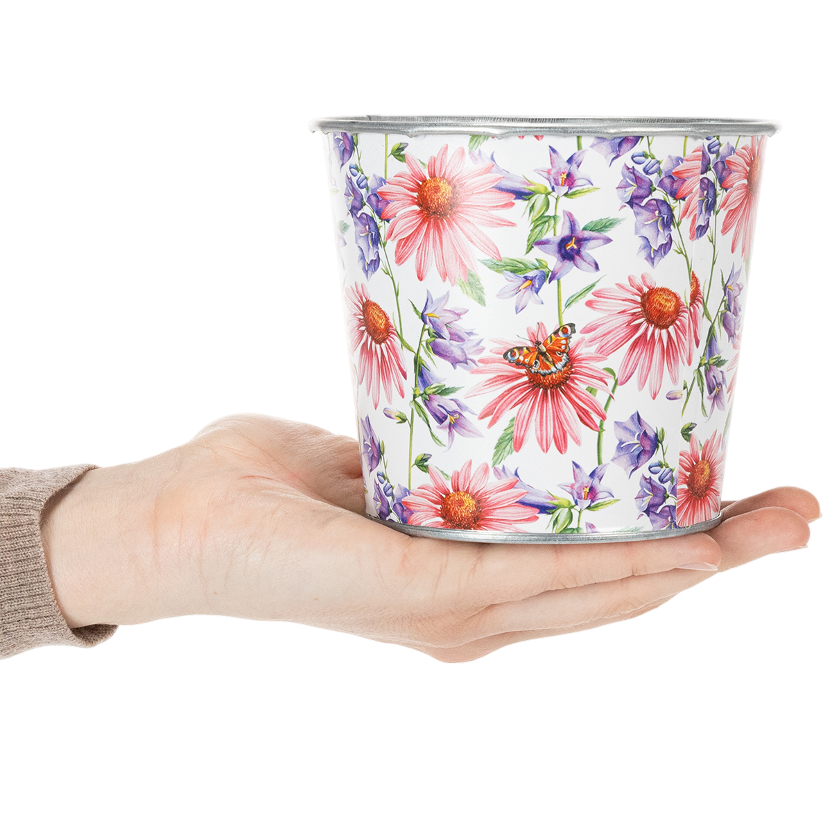Kevään koristeluun tarkoitetun pienen kukkaruukun lisäksi löytyy vielä suurempia malleja ja muita metallisia kätköruukkuja taianomaisilla kukkaprinteillä. Voit siis esitellä tyylikkäästi pieniä kukkia vuodenajan ja mielialaasi mukaan.