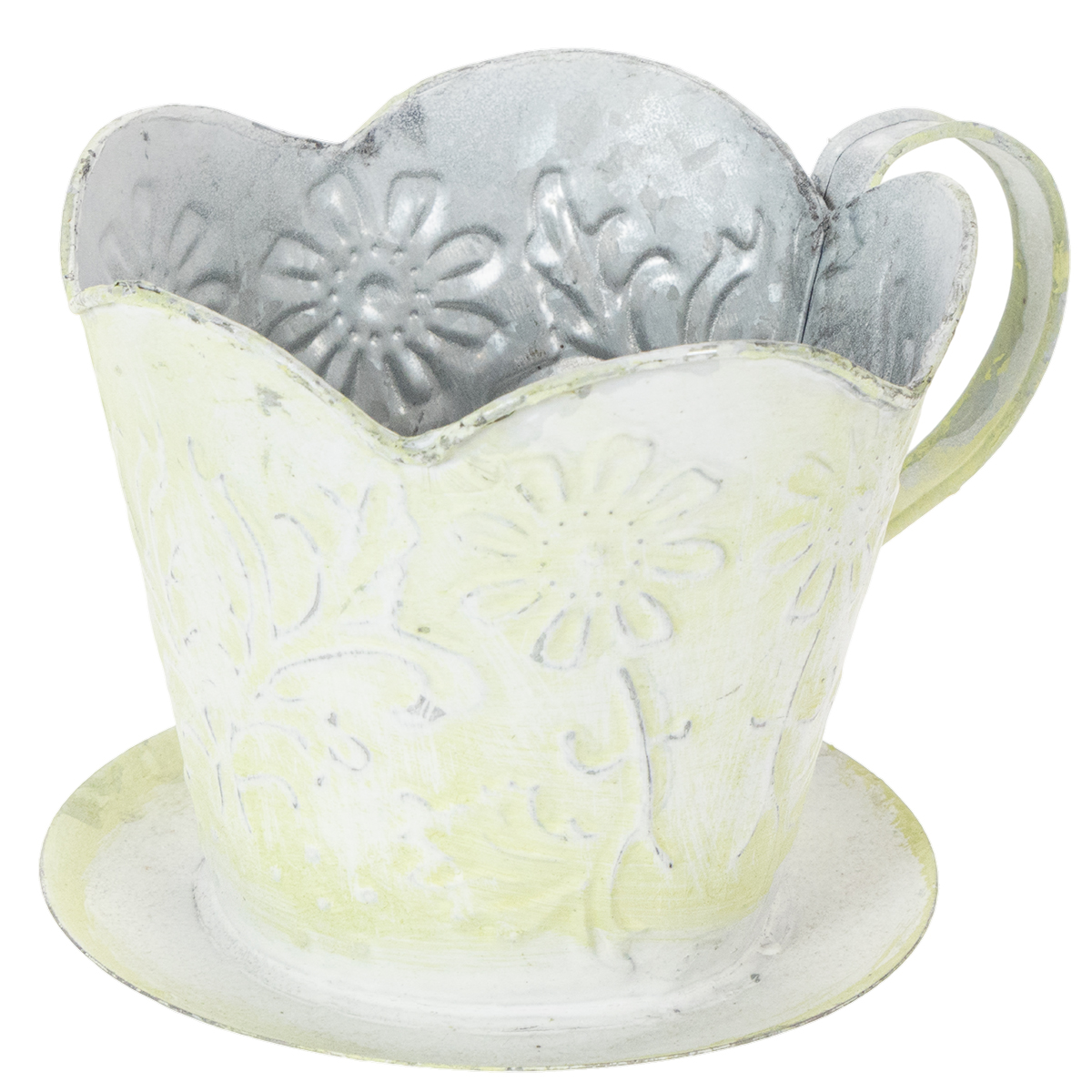 Kukkaruukku, koristeellinen kahvisuodattimen pidike, metallinen kuppi istutukseen, vihreä ja valkoinen kukkakoriste, shabby chic, K11cm Ø11cm