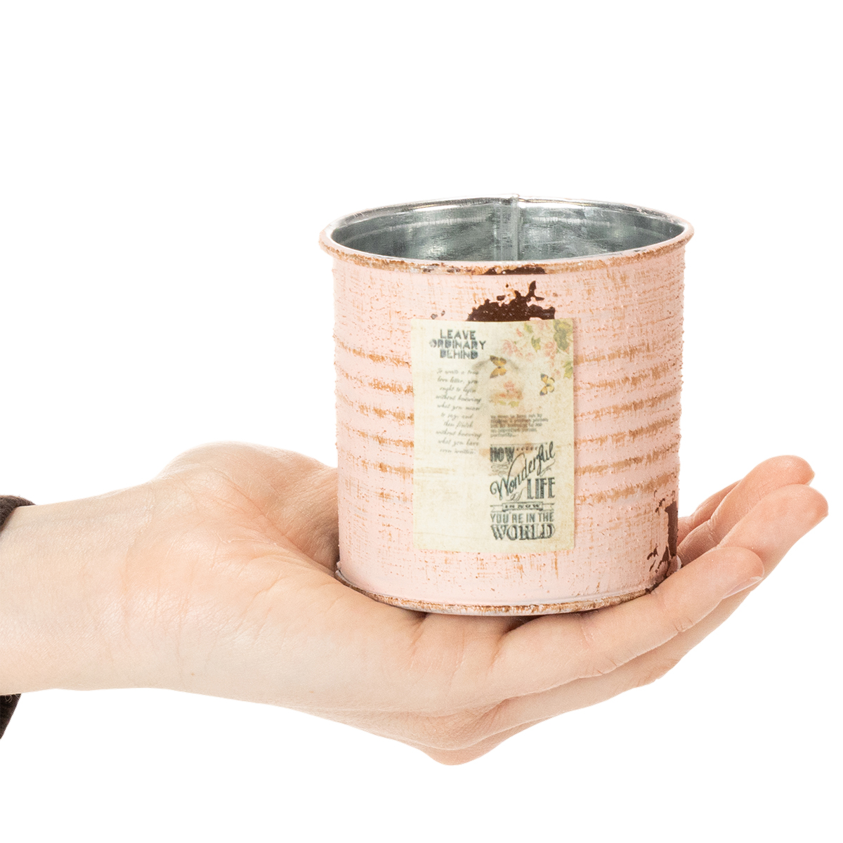 Toisin kuin peltitölkeissä, koristeellisessa tölkissä on ihanan sileät reunat yläreunassa. Laatikko sopii siksi käsityöhön ja värikkäisiin tee-se-itse-ideoihin kesäksi ja kevääksi. Halusitpa sitten kasvattaa mansikoita ikkunalaudalla tai laittaa pieniä kukkia kasvisämpäriin - jalo nuhjuinen tyyli saa koristeellisessa laatikossa olevasi kasvisi näyttämään aina lumoavilta!