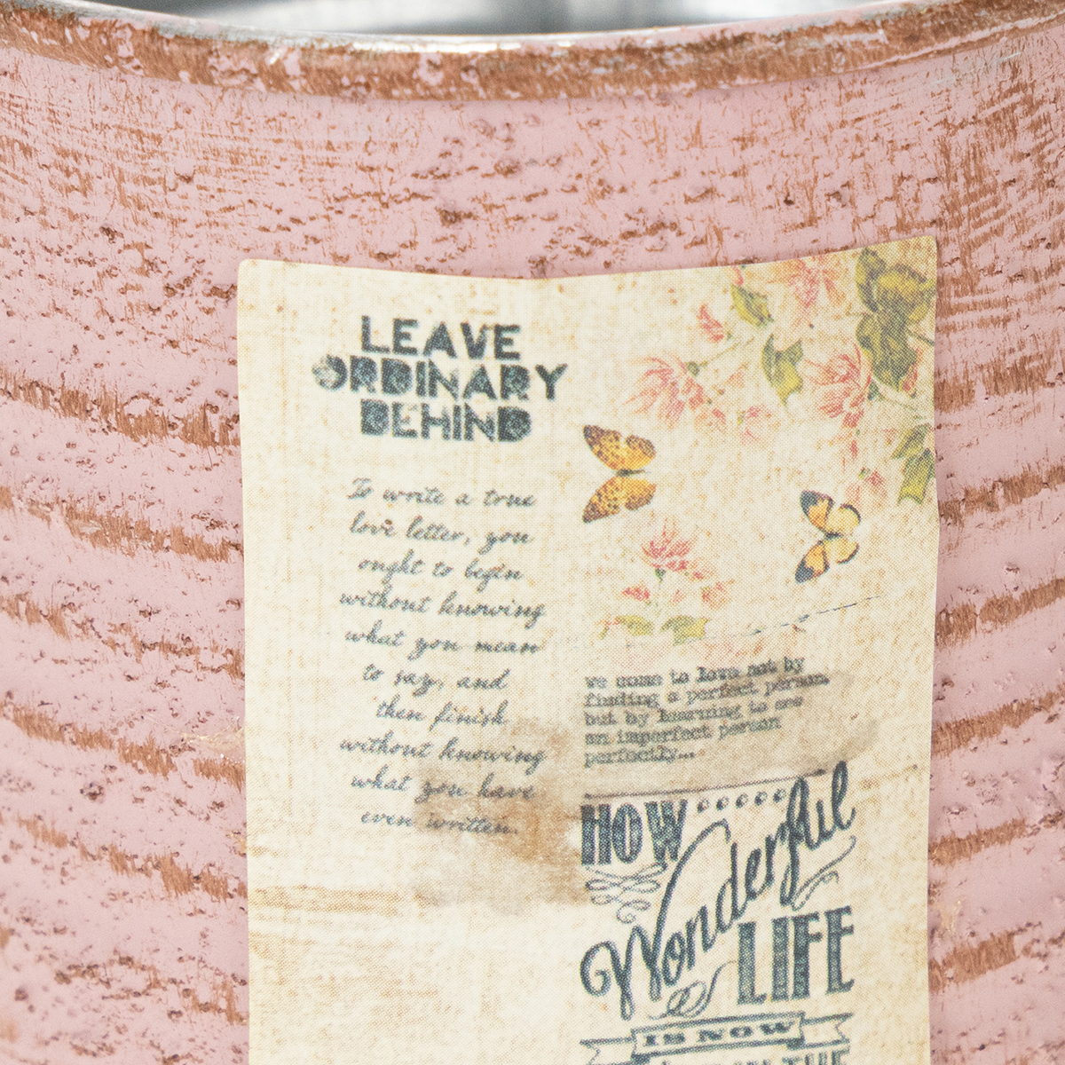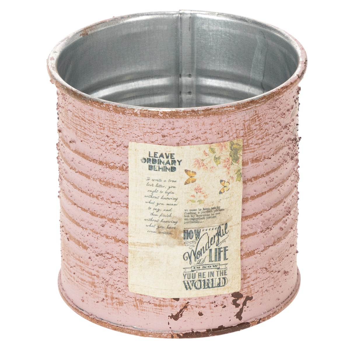 Kukkaruukku koristeellinen pelti, pyöreä, antiikkiruusu, metallinen, Ø8cm, korkeus 7.5cm