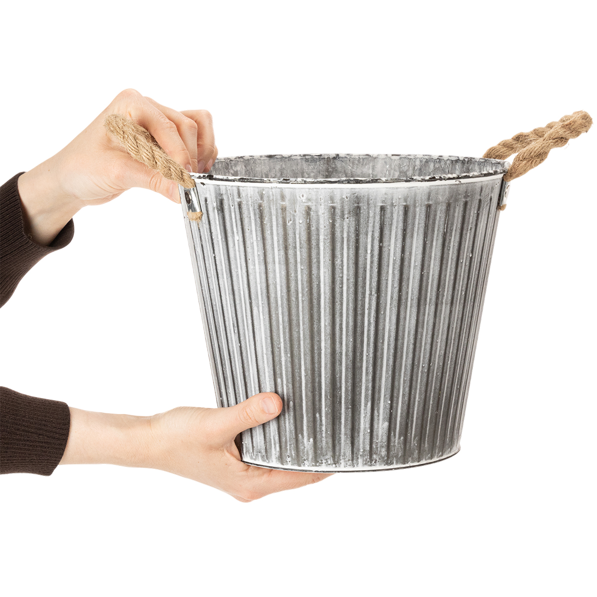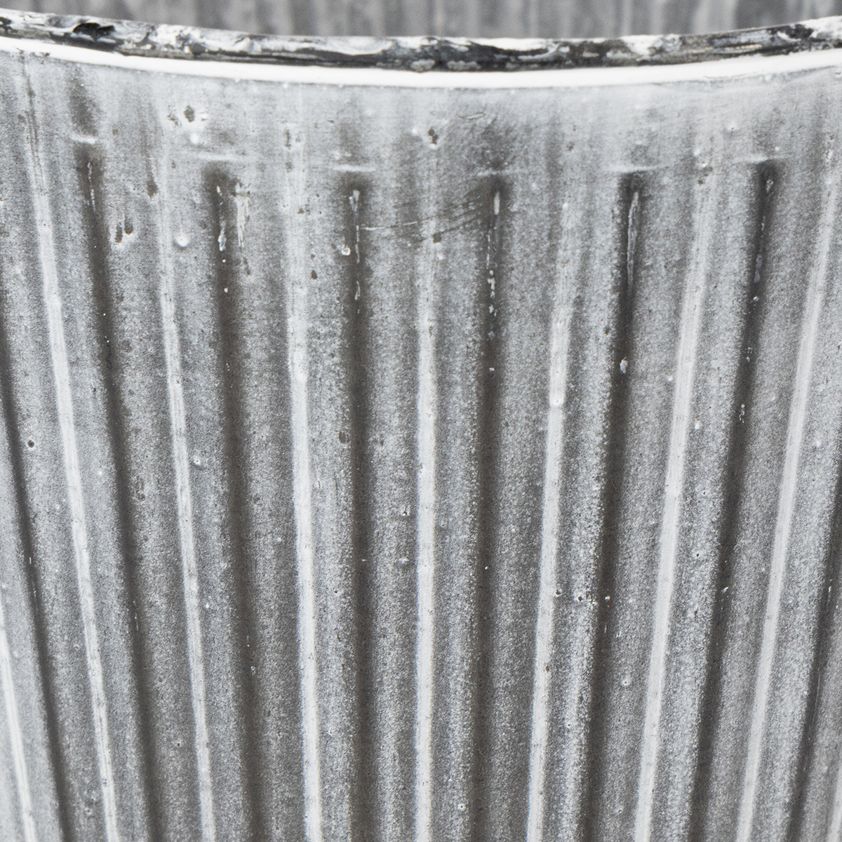 Yhdistele pyöreä metalliruukku myös muiden metallista valmistettujen, viivakuvioiduilla kohokuvioilla varustettujen ruukkujen kanssa VIANA:n laadukkaasta kasviastia-sarjasta valikoimastamme!