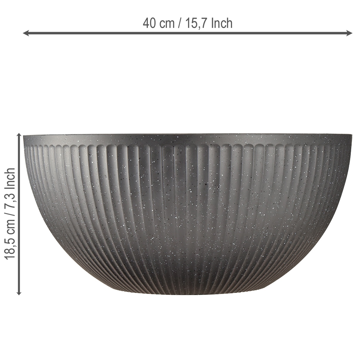 Tuotteen nimi: Kukkaruukku, muovi, antrasiitti, Ø40 cm, korkeus 18,5 cm