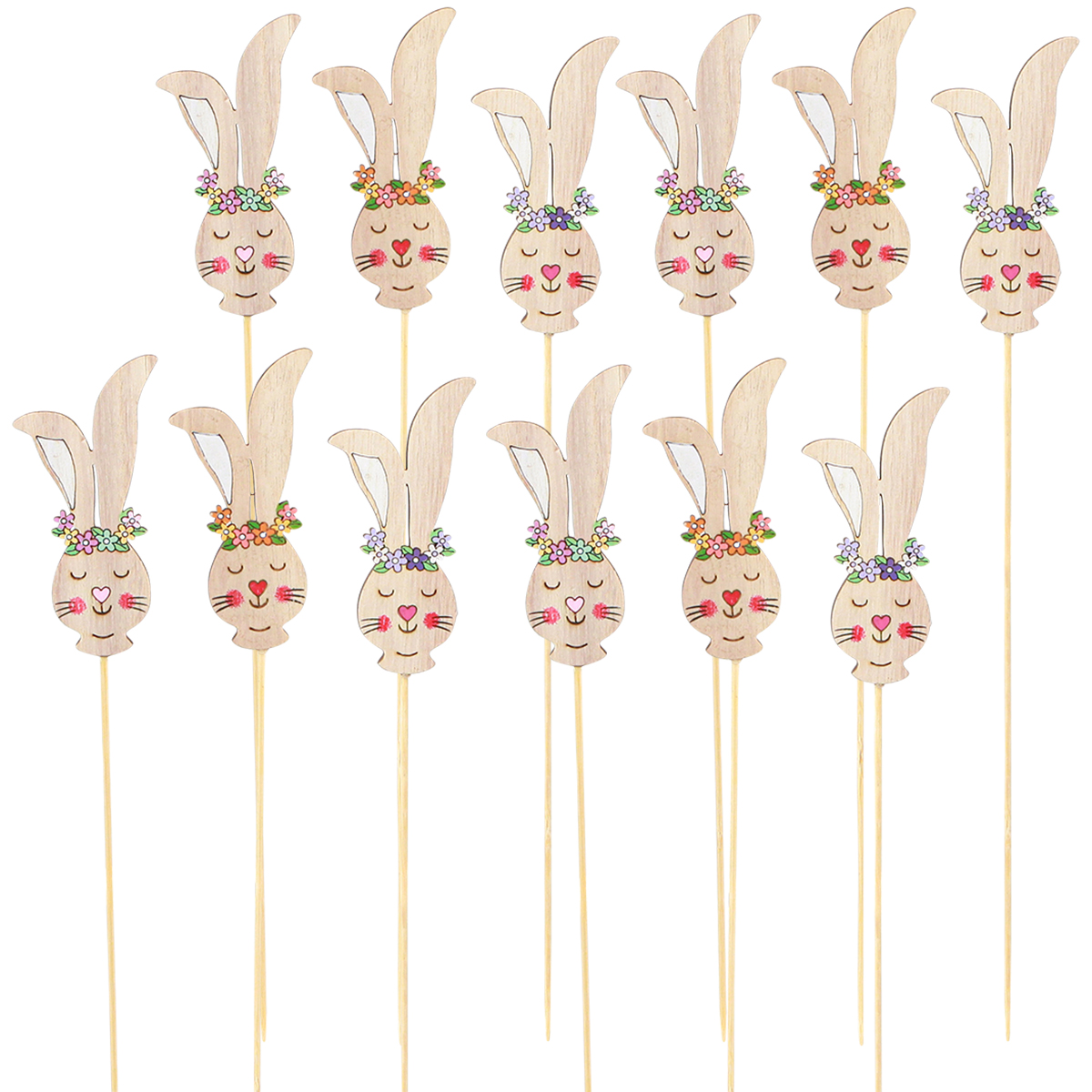 Tuotteen nimi: Kukkatulppa puinen koristeellinen kanin pää tikussa 11cm 12 kpl