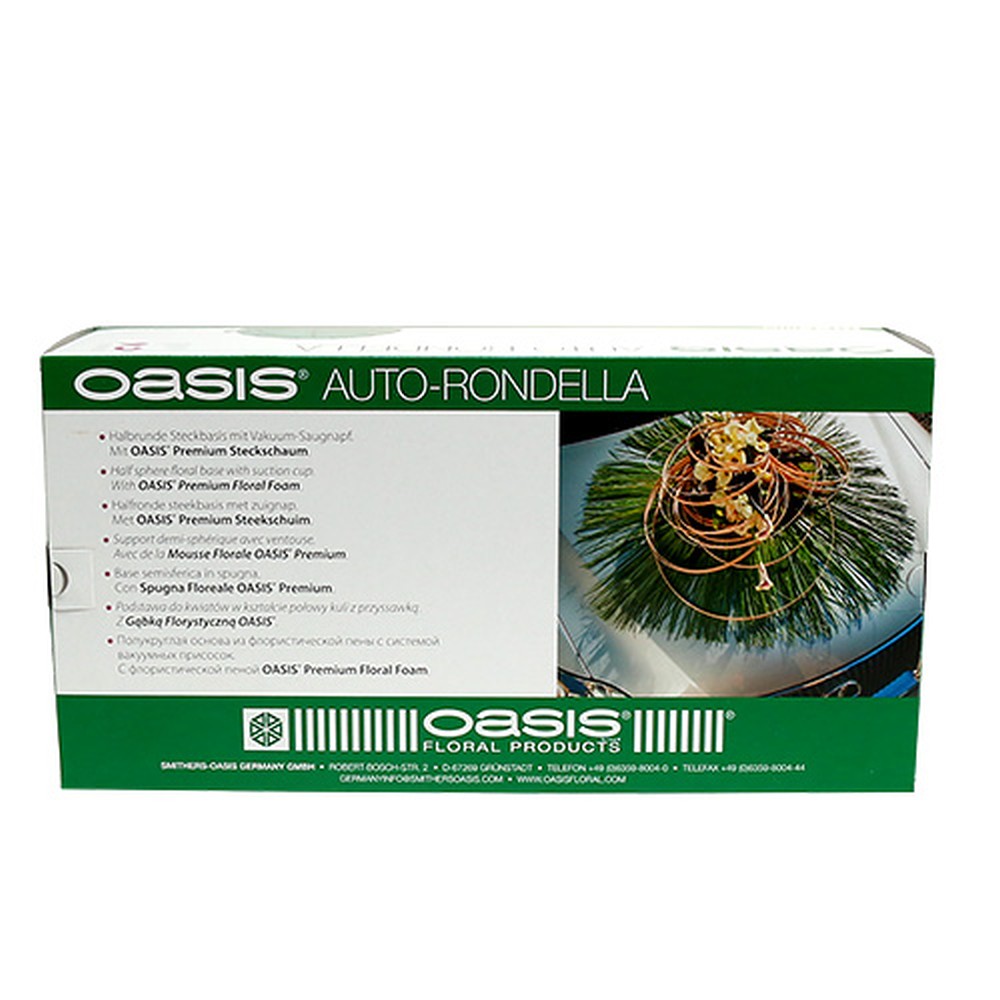 Jos haluat koristella hääparin auton näyttävästi, et voi ohittaa OASIS®:n vaahtomuovista valmistettua autorondellaa. Tämä on nokkela muotoilu. Se koostuu alapuolella olevasta imukupista. Tämä voidaan aktivoida vetämällä molemmat kahvat ulos samanaikaisesti. Konepellin tulpan pistokemassa on koteloitu ristikkoon. Tämä antaa vakautta.