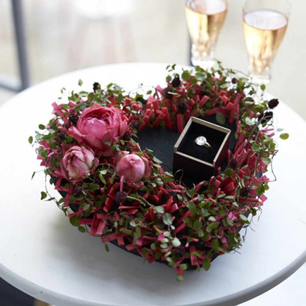 Kompostoituva, ympäristöystävällinen kukka-asetelman pohja voidaan yhdistää moniin materiaaleihin. Surupäivinä haudan koristeluun sopivat klassiset proteat, islannin sammal ja kuusen viherkasvit. Arvokas ja lohdullinen tunnelma syntyy erityisesti, jos jätät keskelle pyöreän alueen hautavaloa varten. Voit myös luoda saman avoimen tilan vaaleanpunaisten ruusujen tai keltaisten auringonkukkien keskelle. Voit sitten sijoittaa pienen syntymäpäivälahjan tähän. Niin monipuolinen on suuri tumma sydämen muoto! Pistokkeellisen sammalsydämen avulla tarvitset vähemmän materiaaleja ja säästät aikaa ja rahaa. Voit esimerkiksi antaa osan sammaleesta näkyä kukkaistutuksissasi. Tämä johtaa myös houkuttelevaan ja tyylikkääseen värikontrastiin. Tämä sopii mainiosti kaikkiin juhliin, messuille tai näyteikkunoiden koristeluun. Ehdoton osa modernia floristiikkaa!
