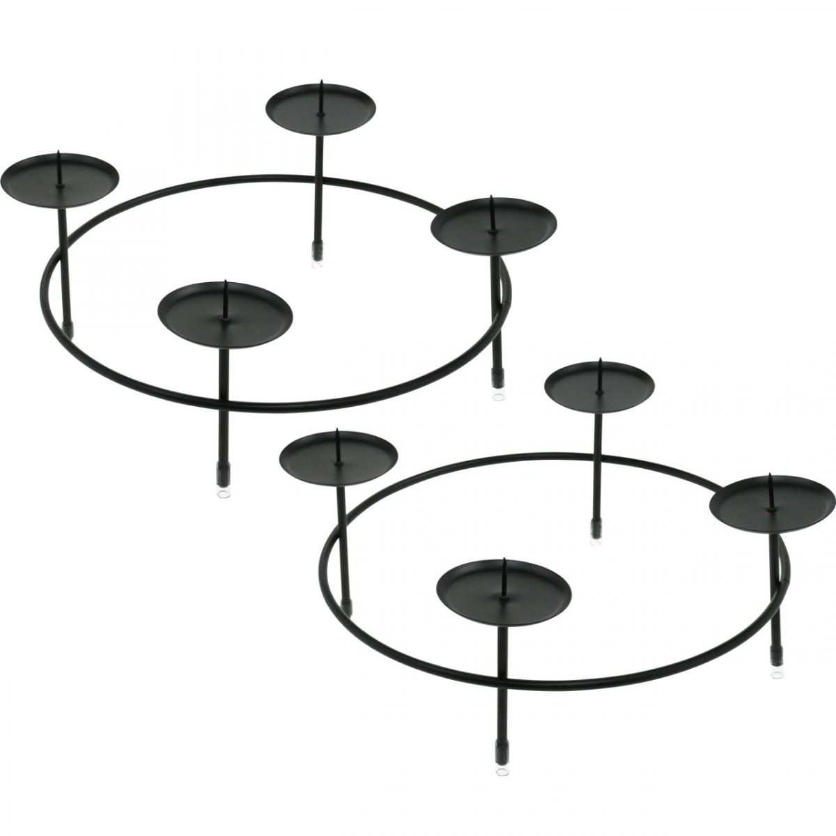 Kynttilänjalka 4 kynttilän musta metalli pöytäkoriste Ø23,5cm 2kpl