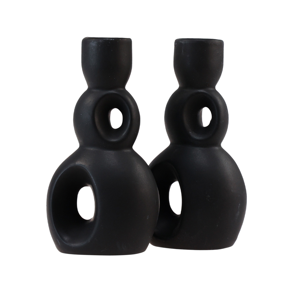 Saat kaksi samankokoista keraamista kynttilänjalkaa mustana. Myymälästämme on saatavilla erikseen myös hieman isompi versio samalla tyylillä!