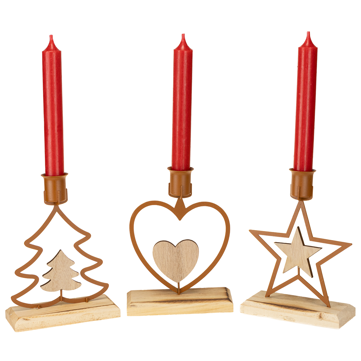 Kynttilänjalka kynttilät tähti sydän kuusenruskea H16,5cm lajitelma 3kpl