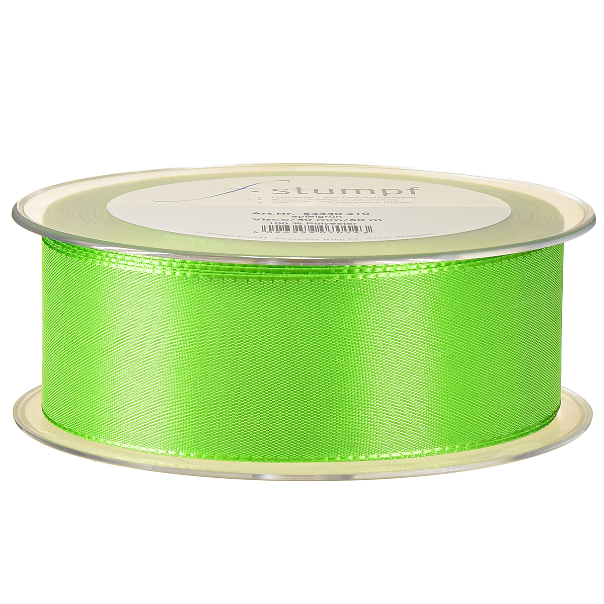Vaaleanvihreä lahja- tai koristenauha on noin 40 millimetriä leveä ja noin 50 metriä pitkä. Se oli valmistettu 100 % polyesterista.
