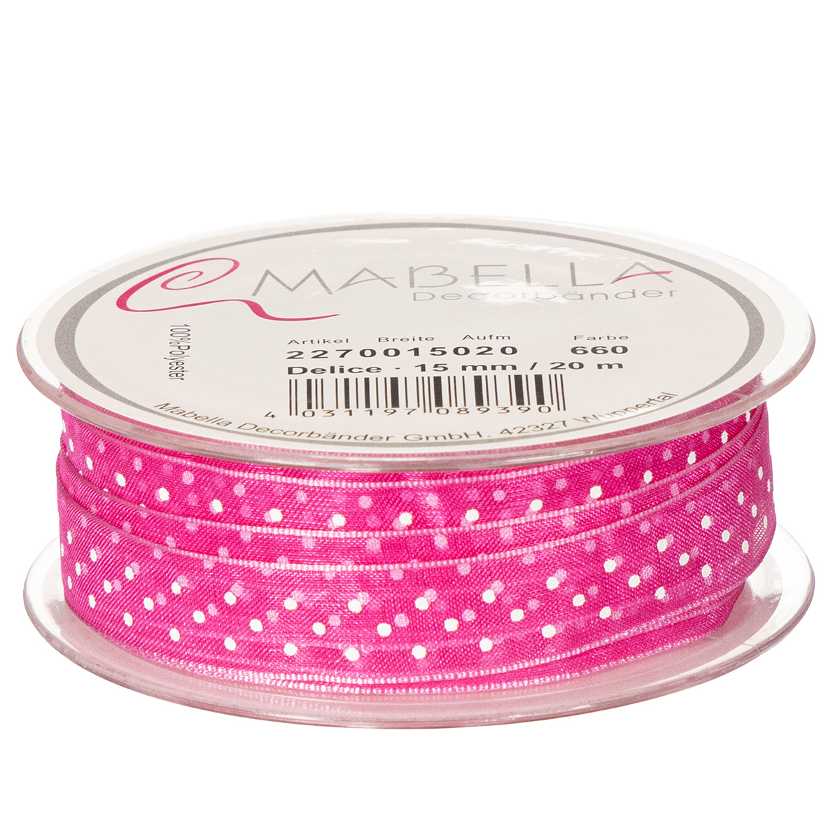 Herkkä ruusun ja pinkin yhdistelmä, jota täydentää elegantti pilkullinen kuvio, antaa nauhalle romanttisen mutta iloisen ilmeen. Korkealaatuinen 100 % polyesterimateriaali takaa pitkäkestoisen laadun ja loistavan kiillon. Ja mikä parasta: täydellisten mittojensa ansiosta nauhaa on helppo sitoa, verhoilla tai koristella. Inspiroidu päästämään luovuutesi valloilleen ja muuntamaan yksinkertaisista esineistä upeita taideteoksia!