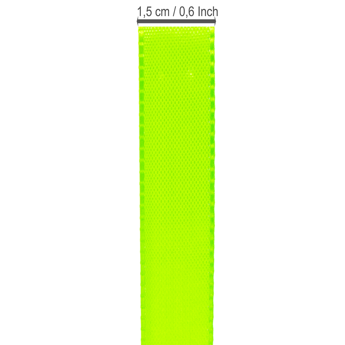 Tämä lahjanauha silmiinpistävällä neonvärillään on todellinen monitoimituote. Se yhdistää korkealaatuisen käsityötaidon 100 % polyesteristä valmistettuun kudotun reunan ja elegantin, hienovaraisesti kimaltelevan pinnan kanssa. Materiaali takaa mittapysyvyyden ja erinomaisen työstettävyyden. Tämä tekee rusettien ja solmujen luomisesta vaivatonta – ihanteellinen tarkkaan askarteluun ja koristeellisiin yksityiskohtiin. Kela on erityisen käytännöllinen, sillä se mahdollistaa nauhan siistin purkamisen ja estää sen sotkeutumisen. Sen 1,5 cm leveys sopii täydellisesti nauhan käyttöön koristeellisesti mutta herkästi.