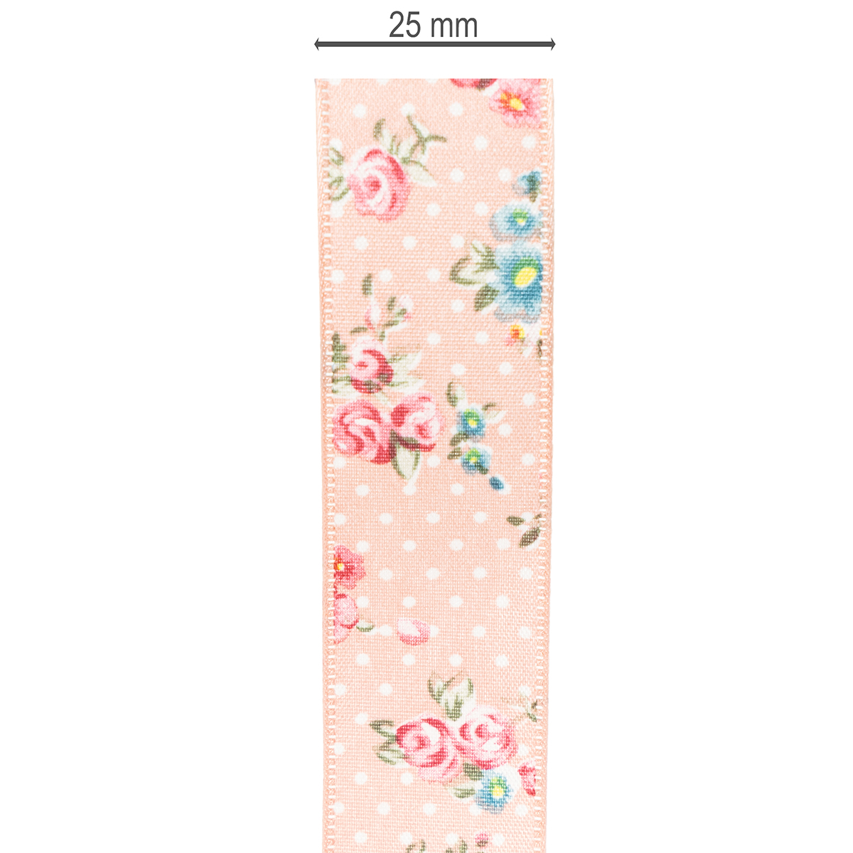 Tuotteen nimi: Lahjanauha kukkakuviolla leikkisiin lahjoihin ja askarteluun, 2,5 cm leveä, 15 m pitkä
