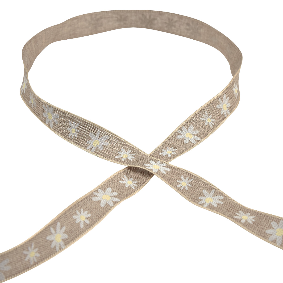 Tuotteen nimi: Lahjanauha kukkia ruskea valkoinen koristenauha 15mm 15m