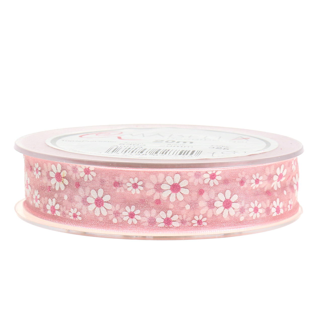 Meille polyesteristä valmistettu lahjanauha toimitetaan sinulle litteänä muovikelana. Sen leveys on noin 20 millimetriä ja pituus noin 20 metriä.