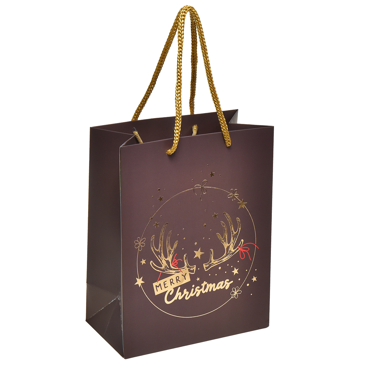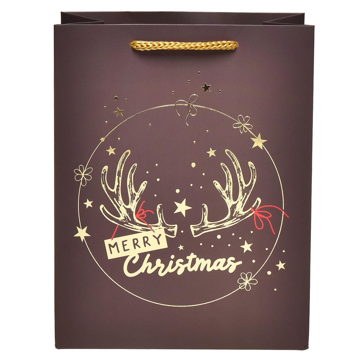 Joululahjojen antaminen alkaa ensivaikutelmasta. Ruskea lahjalaukkumme, jossa on juhlavat kultaiset aksentit ja kiiltävä kultainen sarvi punaisella rusetilla, korostavat mitä tahansa lahjaa. Koristeelliset tähdet ja sanat "Merry Christmas" antavat tälle laukulle lumoavan ilmeen, joka saa vastaanottajat loistamaan. Räätälöidyt mitat ovat 18x10x23 cm, joten se sopii erinomaisesti erilaisiin joululahjoihin, kun taas kultainen nyöri ei ole vain käytännöllinen, vaan myös ylimääräinen katseenvangitsija.