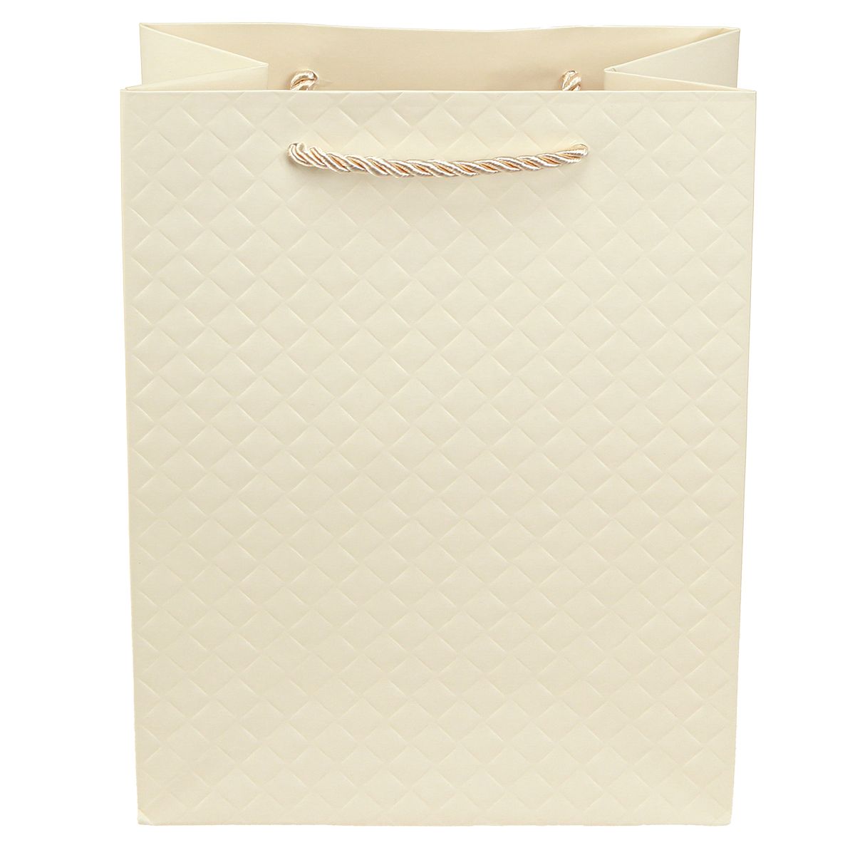 Kermanvärinen lahjapussi on välttämätön lisävaruste jokaiseen erityiseen tilaisuuteen. Lahjakassin mitat ovat 18×10×23 cm, ja se tekee vaikutuksen hienostuneella nahkailmellään, joka on luotu hienostuneilla, kohokuvioiduilla ruuduilla.