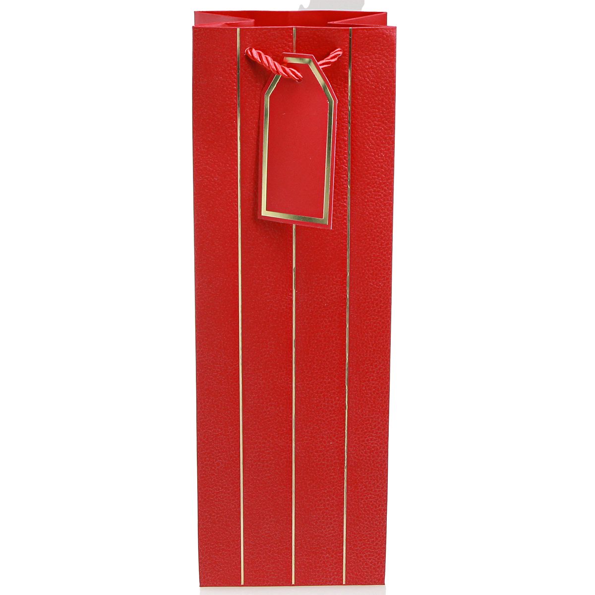Pullopussi on punainen, siinä on kohokuvioidut kultaraidat ja tyylikäs nahkainen ilme. Paperikassissa on vahvistettu pohja pullojen turvalliseen kuljettamiseen. Yksilöllistä etiketöintiä varten on myös tyylikäs etiketti. Kaksi silmukkaa kiiltävää punaista nauhaa täydentävät pullon lahjapussit, joten ne ovat täydellinen lahjapakkaus.