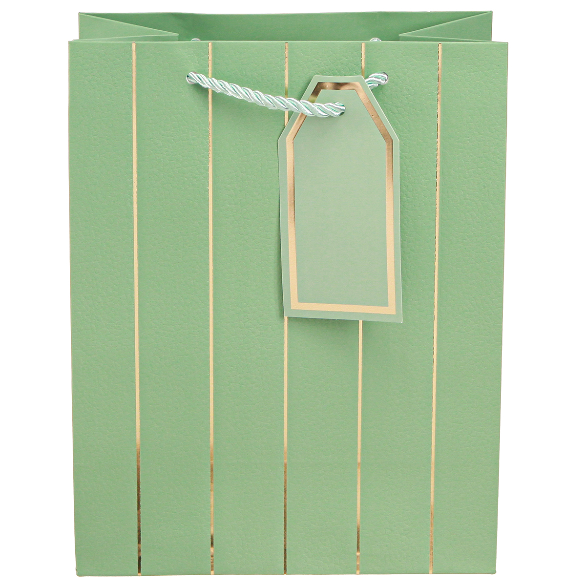 Tuotteen nimi: Lahjapussi vaaleanvihreät kultaiset raidat 18×10×23cm 1 kpl