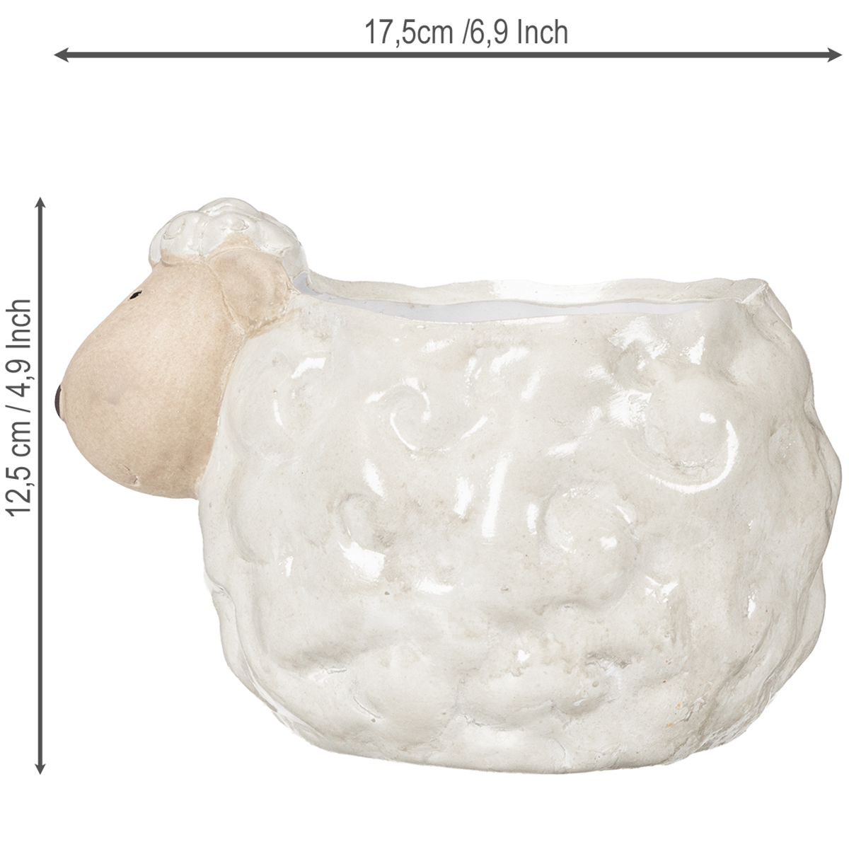 Tämä keraaminen lampaiden istutusastia on valmistettu korkealaatuisesta valkoisesta keramiikasta ja rakkaudella suunniteltu pehmeällä pinnalla ja söpöllä kasvolla. Tämä käsintehty yksityiskohta lisää ripauksen leikkisyyttä ja raikkautta olematta kuitenkaan kitsch-henkinen. Halkaisijaltaan 17 cm ja korkeudeltaan 13 cm tämä koriste-esine on monipuolinen asuste kasveille, ja se sopii jopa kapeille hyllyille tai ikkunalaudoille.
