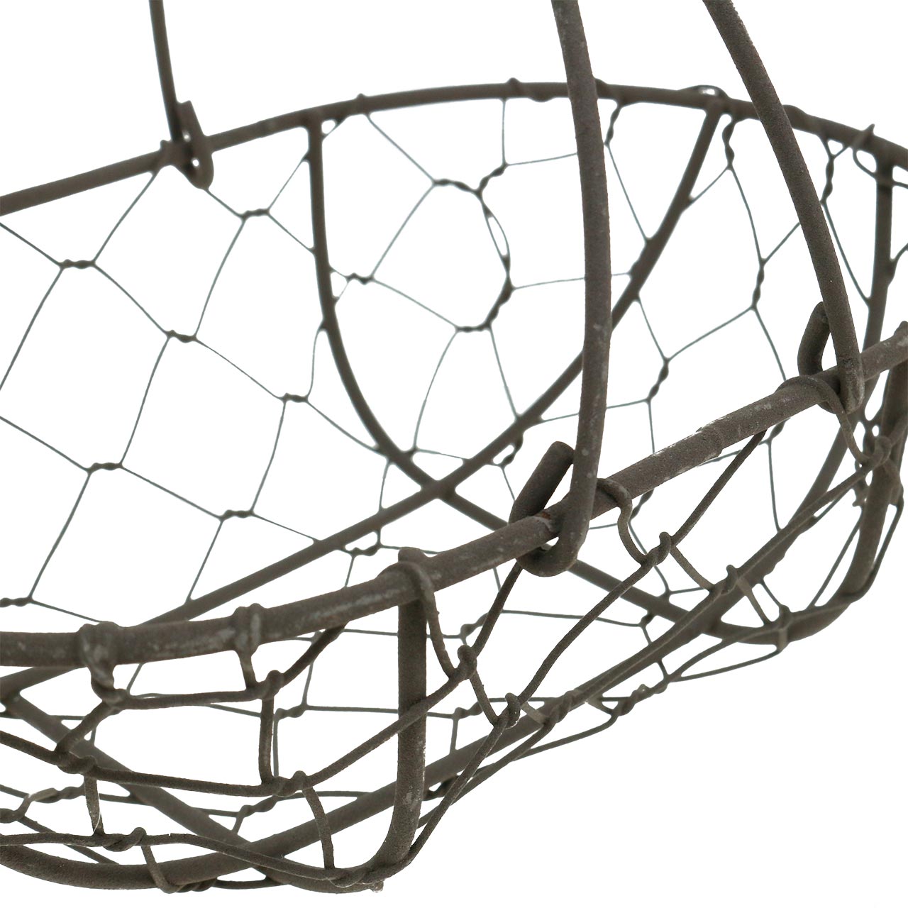 Pieni, tukevasta metalliverkosta valmistettu kori on maalattu tummanharmaaksi, ja sen hieman karhennettu, mattapinta muistuttaa patinaa, mikä tekee korista täydellisen vintage-sisustukseen. Mahonginruskealla lasitteella viimeistelty puinen kahva lisää entisestään tätä jaloa vaikutelmaa.