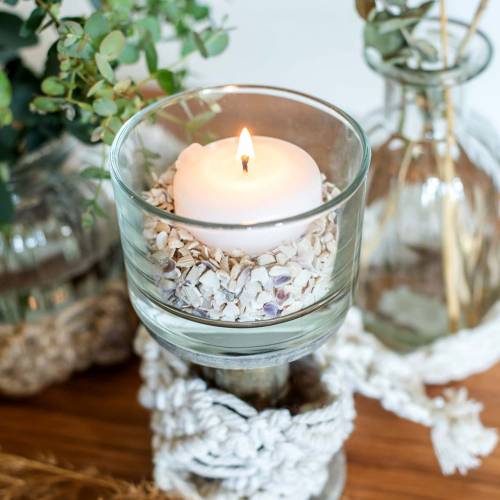 Lasikulho sopii täydellisesti näyttämöksi pienelle luonnosta löydetylle esineelle, kuten käpylle, mielenkiintoiselle kivelle tai muutamalle viehättävälle pienelle oksalle. Vuodenaikojen mukaan voit sijoittaa nämä luonnon aarteet heinän, ruohon tai sammaleen päälle. Pääsiäiskoristeena esimerkiksi keraaminen tai värikkäästi maalattu muna tekee lasissa erittäin kauniin.