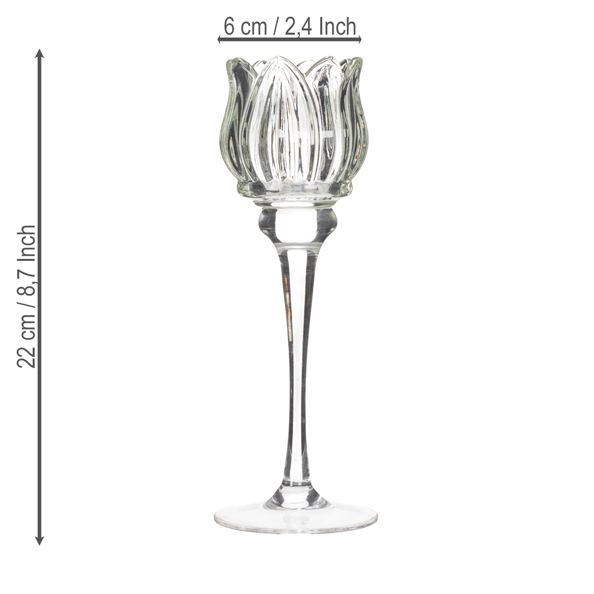 Kuinka usein toivot kattauksesi näyttävän aivan upealta? Olipa kyseessä sitten häävastaanotto, romanttinen illallinen tai seuraava juhlava kattaus – tämä kukanmuotoinen lasinen kynttilänjalka on todellinen kohokohta! Hienovaraisen läpinäkyvyytensä ja tyylikkään 22 cm:n korkeutensa ansiosta se luo tunnelmaa, joka korostaa mitä tahansa tapahtumaa. Lasinen kynttilänjalka ei voisi olla eleganttimpi ja koristeellisempi.