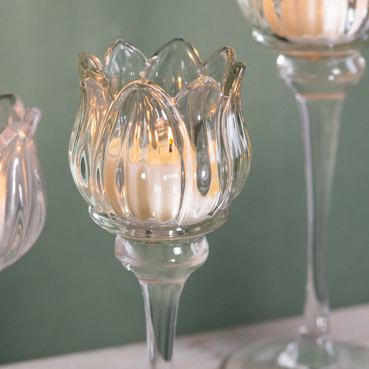 Miksi tyytyä keskinkertaisuuteen, kun voi saada jotain todella ainutlaatuista? Tämä kukanmuotoinen lasinen kynttilänjalka yhdistää ajattoman eleganssin korkealaatuiseen käsityötaitoon. Läpinäkyvä kynttilänjalka sopii täydellisesti puutarhajuhliin, rantahäihin tai tyylikkäisiin illallisjuhliin, sillä se sulautuu saumattomasti mihin tahansa ympäristöön.