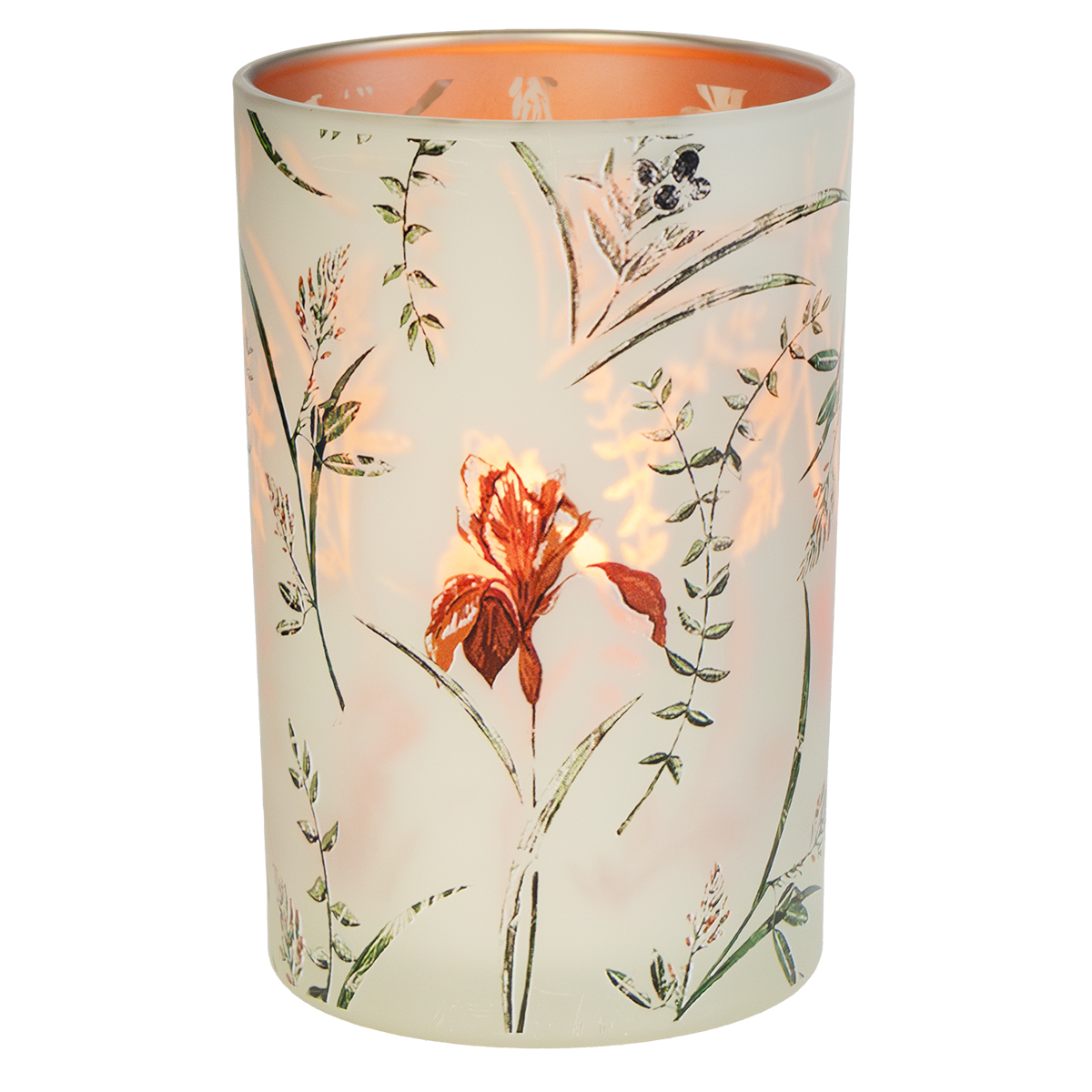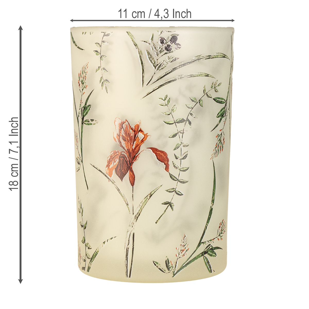 Kukkakuvioinen lasinen tuikkukuppi on enemmän kuin vain kynttilänjalka – se on näyttävä asuste kotiisi. Herkkä beigen, vihreän ja punaisen sävyinen kukkakuvio antaa sille luonnollisen ja harmonisen ilmeen, joka täydentää kauniisti vintage- tai maalaistyylistä sisustusta. Käsintehty muotoilu takaa jokaisen kynttilänjalan ainutlaatuisuuden. 18 cm korkea ja 12 cm halkaisijaltaan oleva kynttiläkuppi tarjoaa runsaasti tilaa sekä tavallisille tuikkuille että koristekynttilöille. Korkealaatuinen lasi päästää valon ja lämmön loistamaan kauniisti – efekti, joka näyttää erityisen taianomaiselta hämärässä.