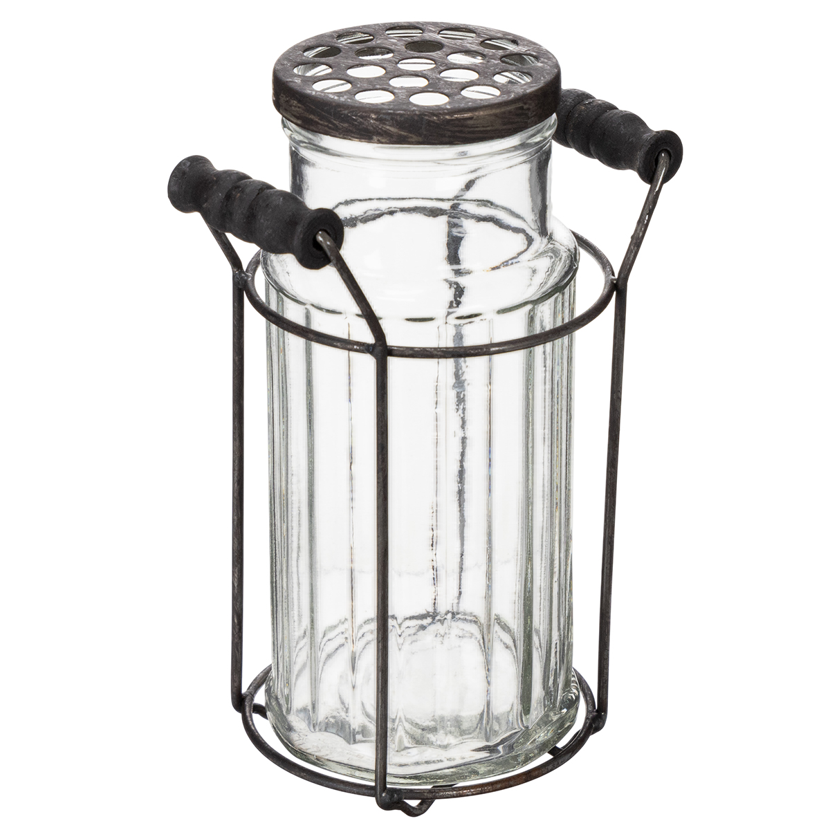 Lasipullo, metallinen korikoriste – tyylikäs lisä kotiisi