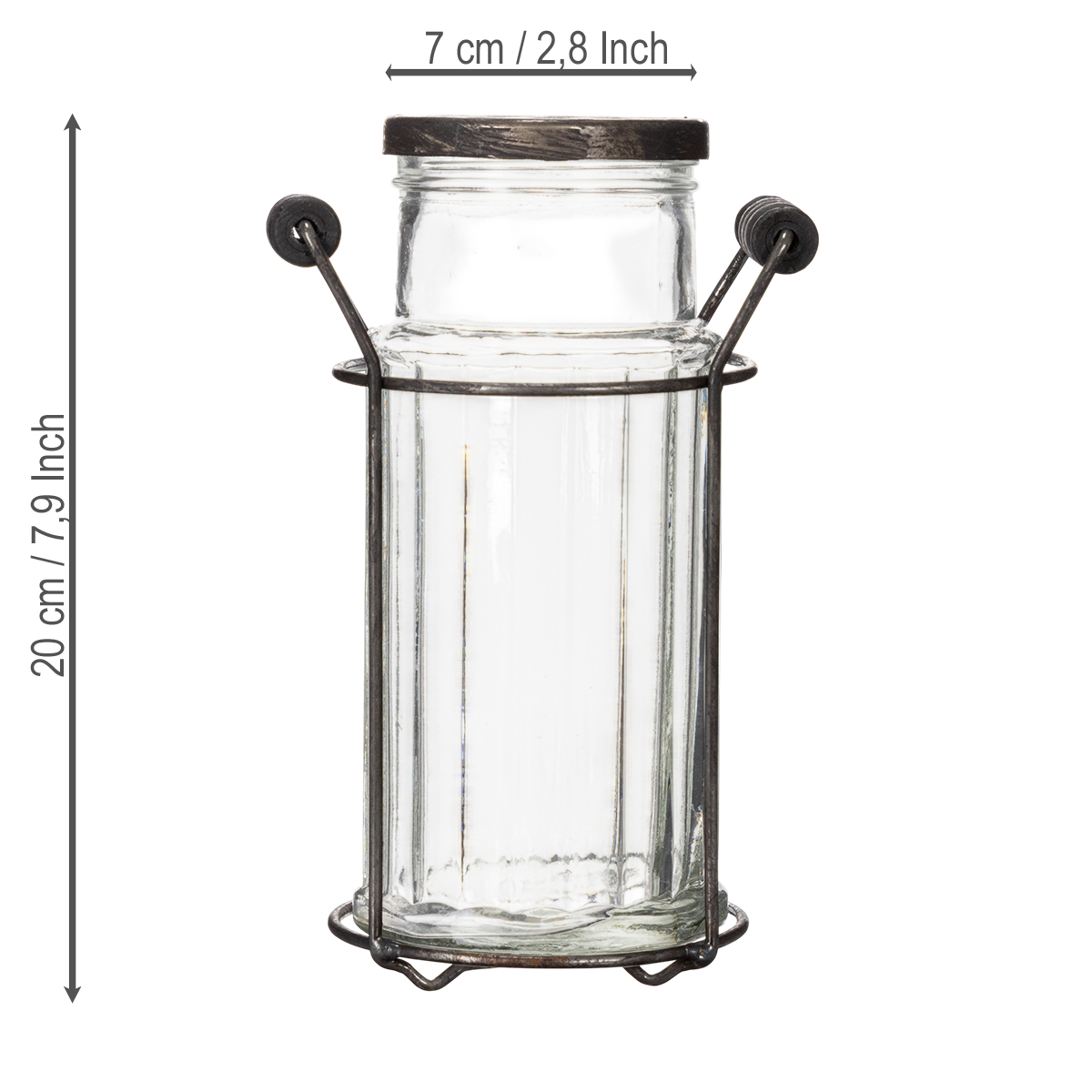 Lasin ja metallin yhdistelmä tuo kotiisi ripauksen teollista tyylikkyyttä, ja hienostunut käsityötaito on klassinen katseenvangitsija. Korkealaatuisesta lasista ja tukevasta metallikehyksestä valmistettu pullo tekee vaikutuksen paitsi visuaalisesti myös kestävyydellään. Pienine aukkoineen varustettu kansi tekee siitä erityisen monipuolisen: sitä voi käyttää maljakkona yksittäisille kukille, koristeellisena keittiövälinetelineenä tai jopa luovana kynttilänjalkana. Olipa kyseessä olohuone, keittiö tai eteinen – tämä lasipullo löytää paikkansa missä tahansa.