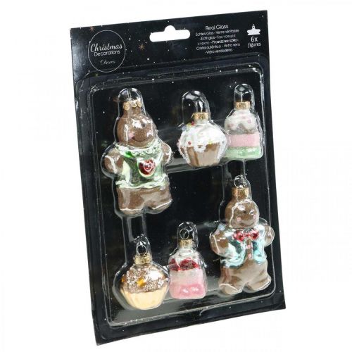 Lasiset riipukset piparkakkumies & kuppikakkuja, joulukuusikoristeiden sekoitus, joululeipomo H4 / 8cm aitoa lasia 6kpl