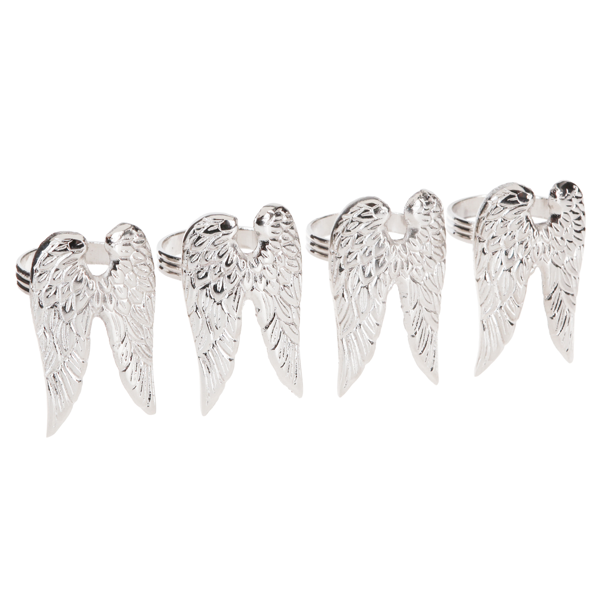 Tuotteen nimi: Lautasliinasormukset enkelin siivet pöytäkoristeet hopea 6,5cm Ø4cm 4 kpl