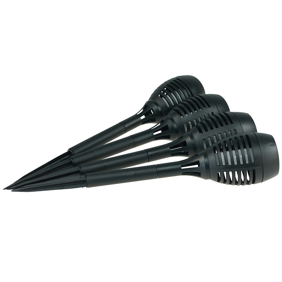 Saat koristeellisen parvekkeen ja puutarhavalaistuksen 4 kpl sarjoina. Mustasta muovista valmistetut taskulamput ovat kukin 4 osasta ja ne koostuvat vartasta, tikusta, taskulampun pidikkeestä ja taskulamppupäästä.