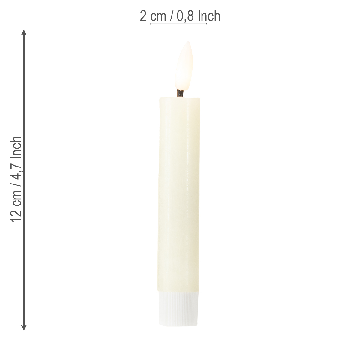 Kynttilät ovat 14,5 cm korkeita ja sopivat täydellisesti tyylikkäisiin, normaalin kokoisiin kynttilänjalkoihin sekä adventtiseppeleisiin. Ne tekevät taikansa paitsi juhlavissa joulukoristeissa. Paristokäyttöisinä ja johdottomina niitä voi käyttää missä tahansa – pistorasiaa ei tarvita! Olipa kyseessä ikkunalaudalla, kattauksessa tai osana romanttista tee-se-itse-projektia: nämä kartiokynttilät ovat monipuolisia ja luovat tyylikkään tunnelman mihin tahansa huoneeseen.