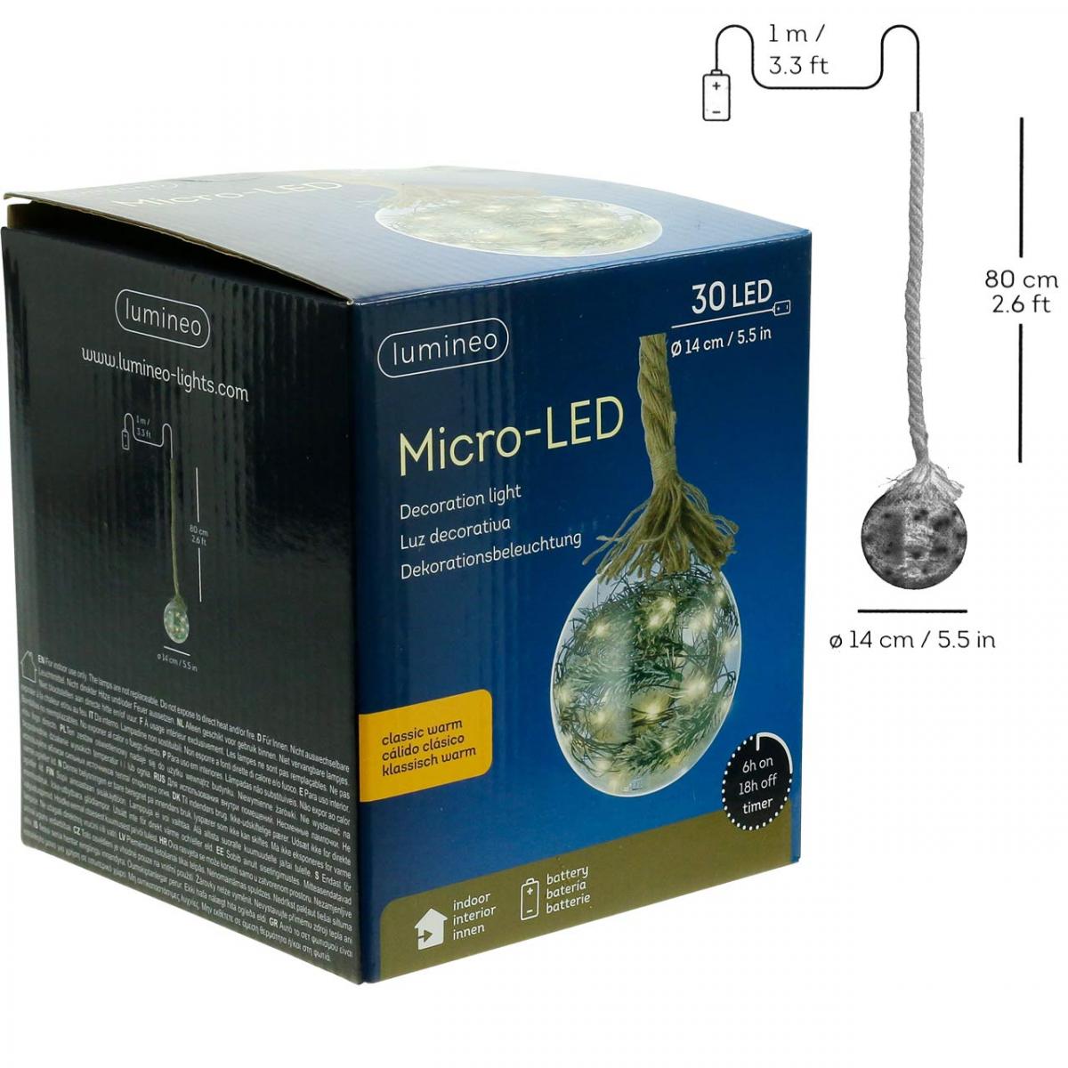 LED pallolumikuusi sisällä Ø14cm 30L lämmin valkoinen ajastin
