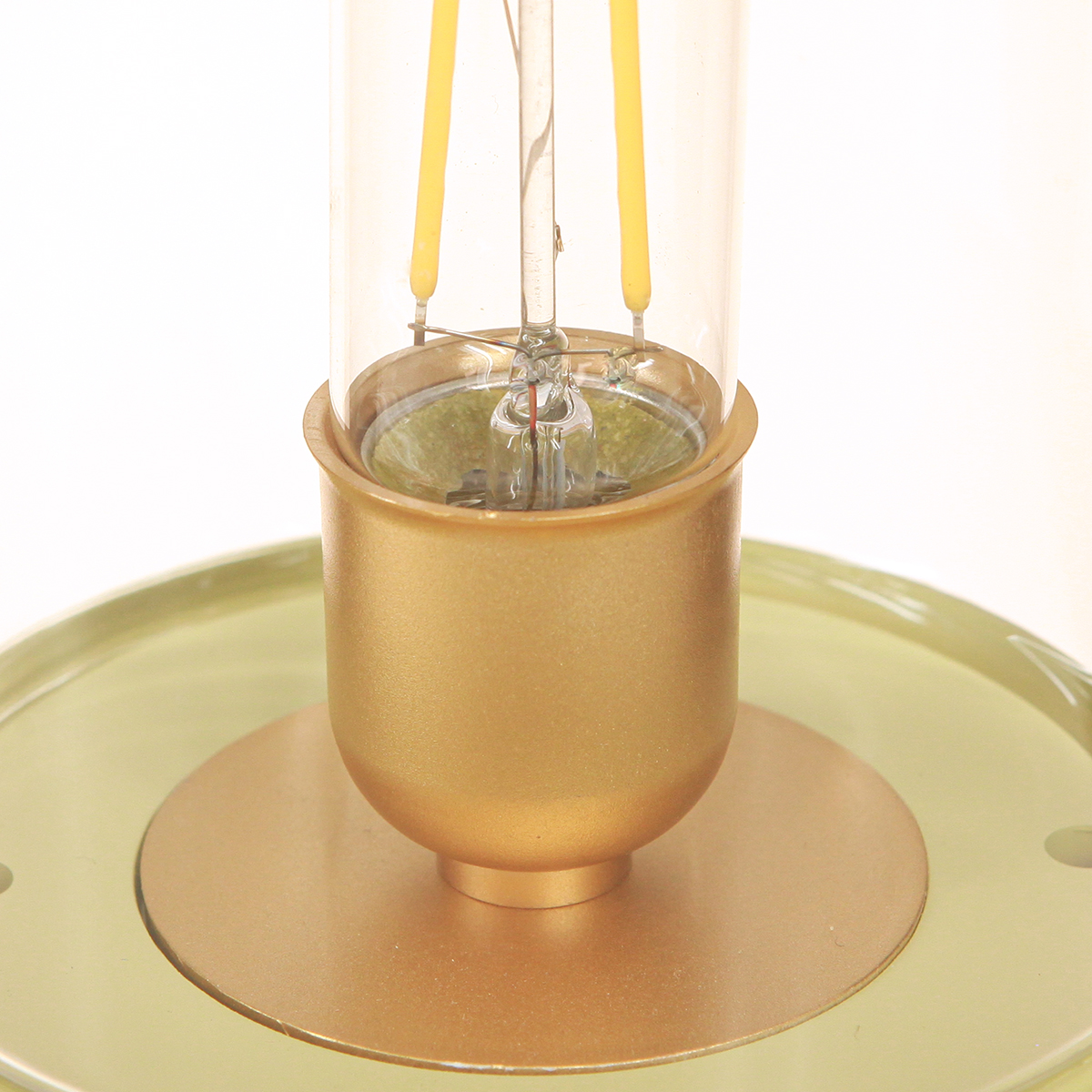 Retropöytävalaisin on valmistettu laadukkaista materiaaleista, joissa yhdistyvät kestävyys ja tyyli. Aidosta lasista valmistettu varjostin varmistaa aidon ilmeen ja antaa valon loistaa tasaisesti. Kestävästä pistaasinvihreästä muovista valmistettu kotelo antaa valaisimelle tyylikkään ulkonäön ja tekee siitä minkä tahansa sisustuksen keskuksen.