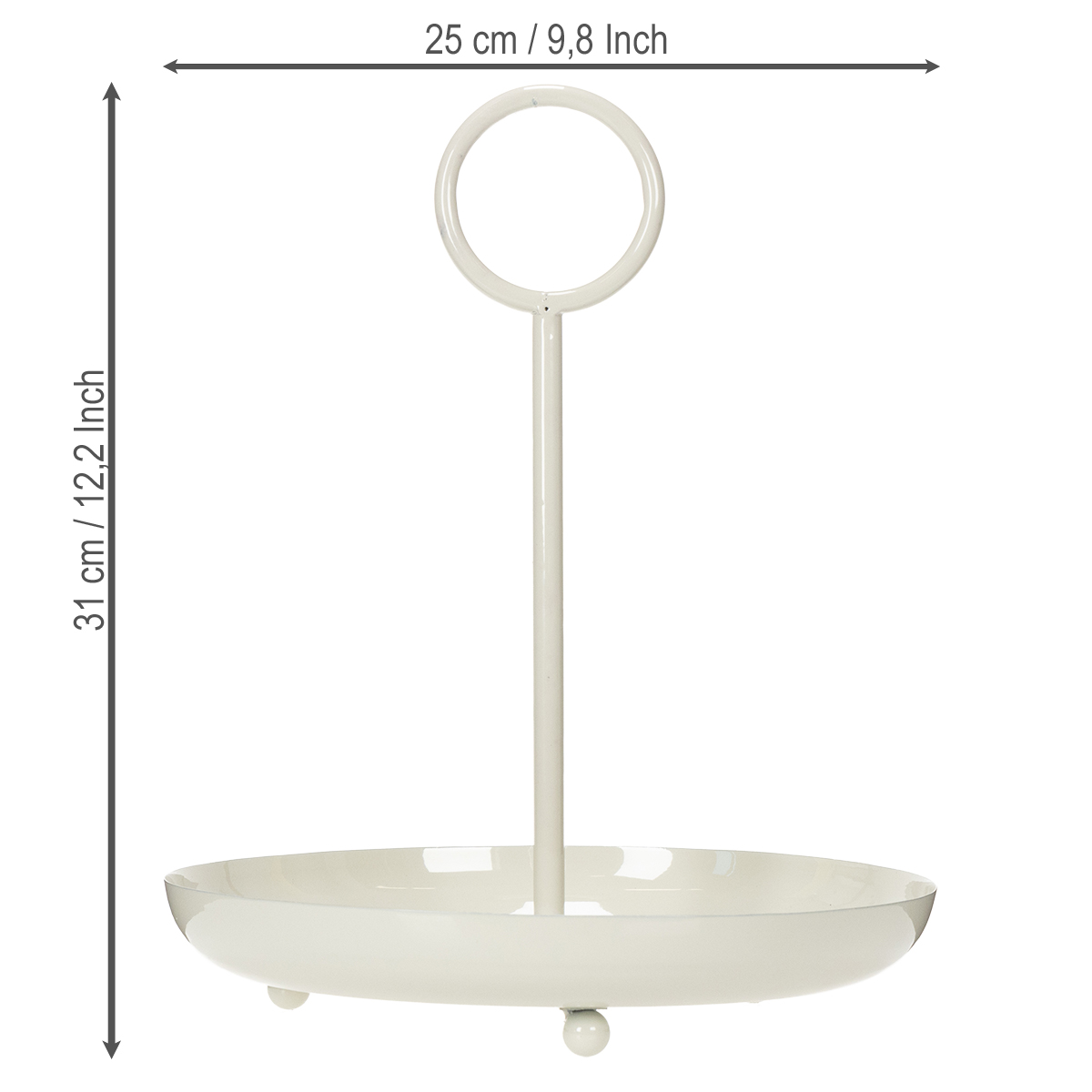 Yläosassa oleva pyöreä rengasmainen kahva on helppo ottaa kiinni ja tekee sijoittelusta helppoa. Haluatko siirtää sen nopeasti ruokapöydästä sivupöytään? Ei hätää. 31 cm:n korkeutensa ansiosta se sopii hyvin myös suurempien koriste-esineiden, kuten maljakoiden tai kukka-asetelmien, kanssa. Täydellinen häihin, merkkipäiviin tai kahvitilaisuuksiin.