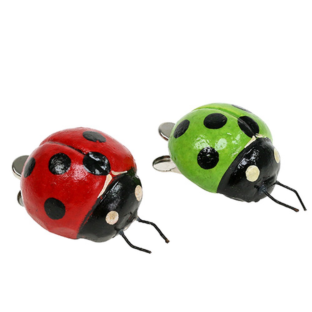 Leppäkerttu kiinnikkeellä 4,5cm punainen, vihreä 6kpl