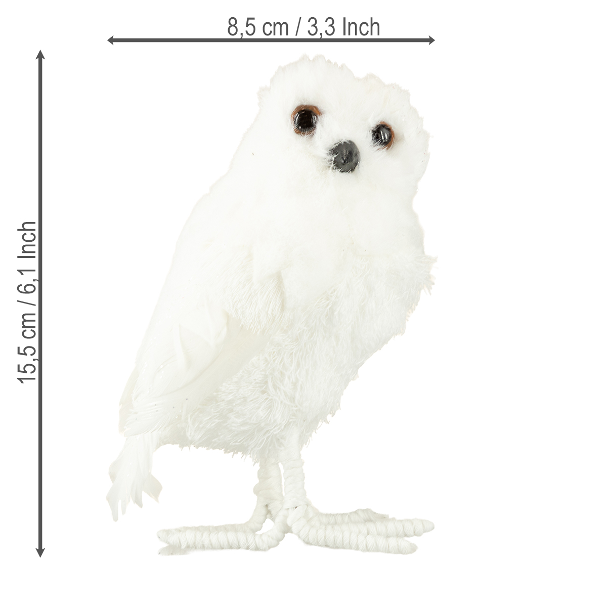 Tuotteen nimi: Luminen pöllö koristepöllö valkoinen turkilla ja höyhenillä 15.5cm 2kpl