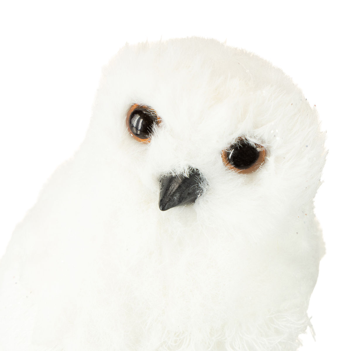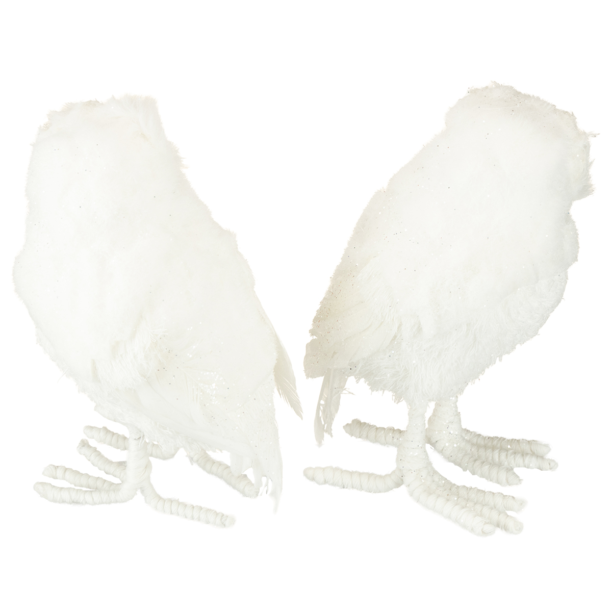 Luminen pöllö koristepöllö valkoinen turkilla ja höyhenillä 15.5cm 2kpl