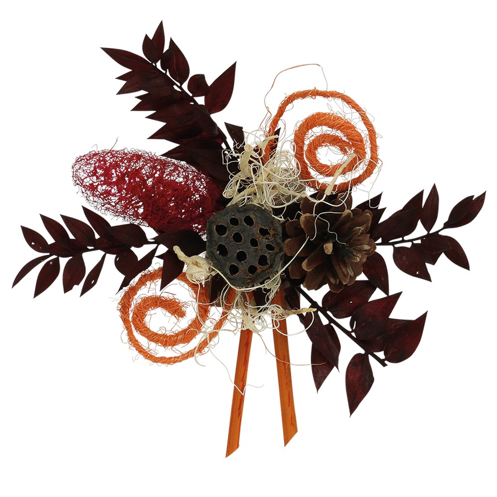 Materiaali: Ruscus oksat, kuivatut Achillea, lootuksenvarret, Cane Spring, vuoristomännyn käpyjä, Plumosum, Palmspear, Luffa
