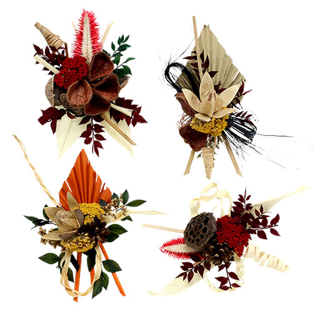 Siirteiset luonnonpäällysteet on varustettu kukin kahdella pitkällä patenttiklipsillä, ja ne voidaan siten taidokkaasti integroida hautajaisjärjestelyihin ja hautaseppeleisiin ja kiinnittää esimerkiksi pistemassaan, kuusenvihreään tai olkeen. Lajitellussa sekoituksessa on valmiina neljä ihanaa kuviota, jotka on sovitettu yhteen tyylikkäästi. Lisäksi palmun keihäs ja lootuskolvi, kuivattu Achillea, jota kutsutaan myös siankärsämöksi, villi liljat, scaletta pods, sokeriruoko keväällä ja canella. Jokainen sarjan yksittäinen päällyste on koottu rakkaudella ja järjestetty taidokkaasti.