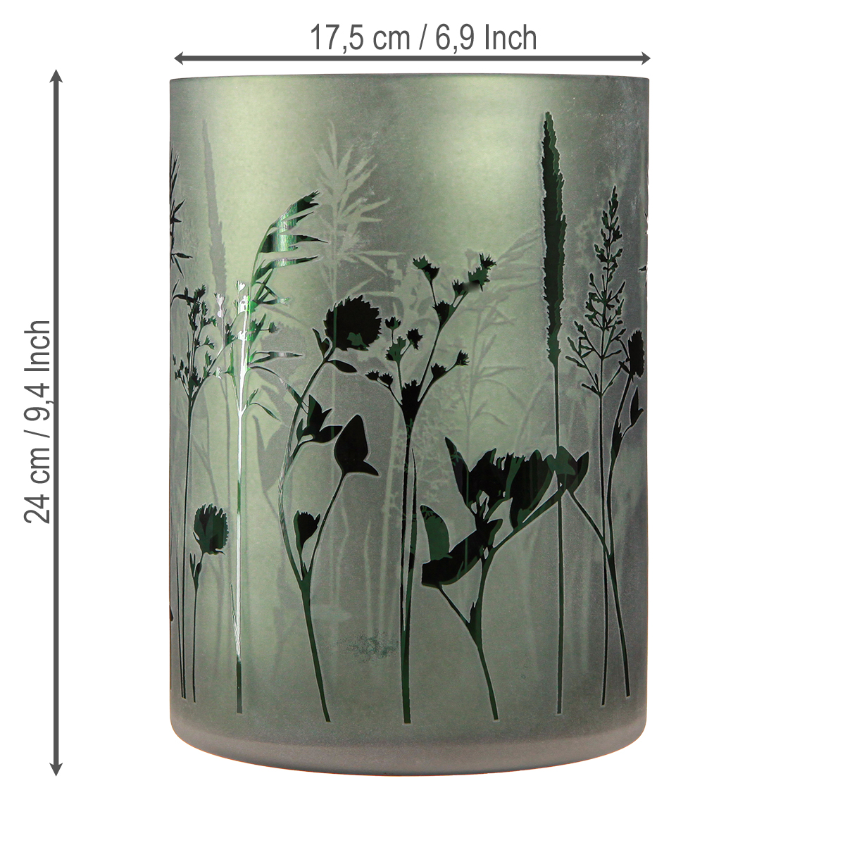Suuri, korkea lasilyhty valkoinen ja vihreä niitty on enemmän kuin vain koristeellinen valonlähde; se on tyylikäs elementti, joka korostaa sekä modernia että klassista sisustusta. Vaikuttavalla noin 24 cm:n korkeudellaan ja noin 17,5 cm:n halkaisijallaan tämä lasilyhty on erityisen vaikuttava. Valkoinen sisäkerros sisältää toisen niittyaiheen, joka luo tehokkaan 3D-ilmeen ulkopuolelle. Voit nauttia tästä spektaakkelista kynttilänvalossa, mutta myös ilman sisävaloa. Tämä koristeellinen lasilyhty herättää kaikkien huomion ja luo lämpimän, kutsuvan tunnelman, olipa sitten sohvapöydässäsi, kevään ja kesän pöytäkoristeena tai sisäänkäynnin yhteydessä.