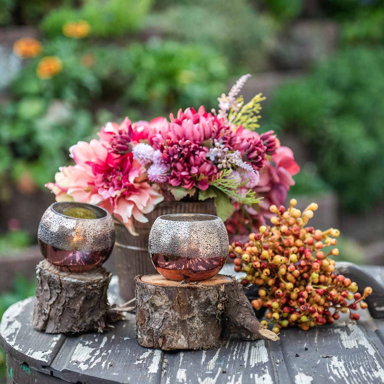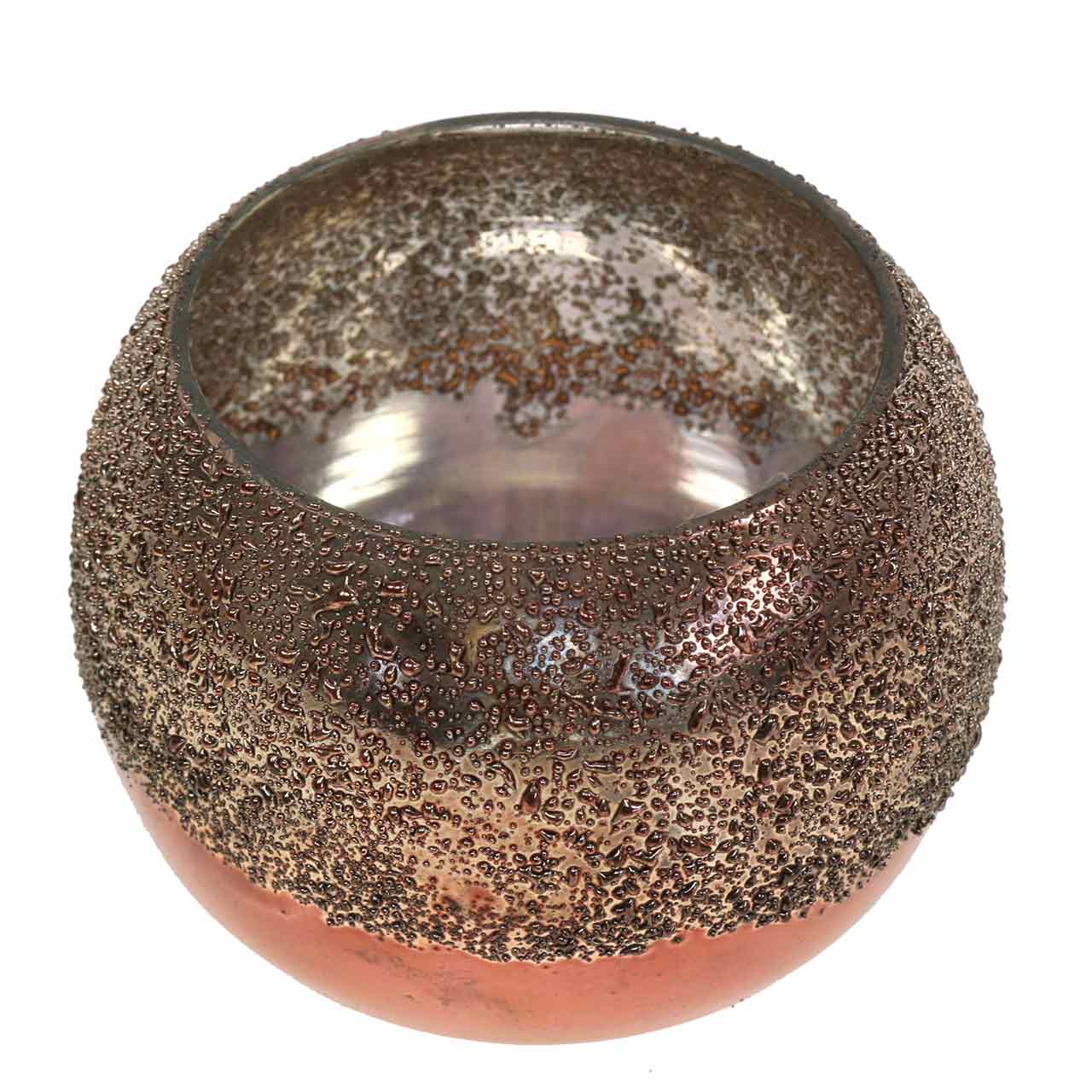 Kuparin värisen lasilyhdyn jännittävä pintarakenne ja metallinen kiilto tekevät siitä monipuolisen sisustusobjektin sisustuksessa.Kuparin värisessä lasilyhdyssä on epäsäännöllinen pienten kuplien rakenne yläosassa. Koristelasien alaosa jätettiin kiiltävän sileäksi ja heijastaa siten ympäristöään.